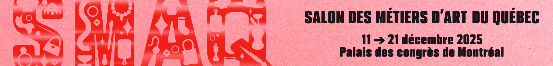 Chaque mois de décembre, à l’approche des Fêtes, le Palais des congrès de Montréal accueille la crème des métiers d’art du Québec. Depuis plus de 60 ans, le Salon des métiers d’art du Québec (SMAQ), orchestré par le Conseil des métiers d’art du Québec, réunit près de 200 artisan·e·s sélectionné·e·s avec soin — céramistes, ébénistes, joailliers, maroquiniers, verriers, couteliers, et tant d’autres — venu·e·s des quatre coins du Québec et du Canada.