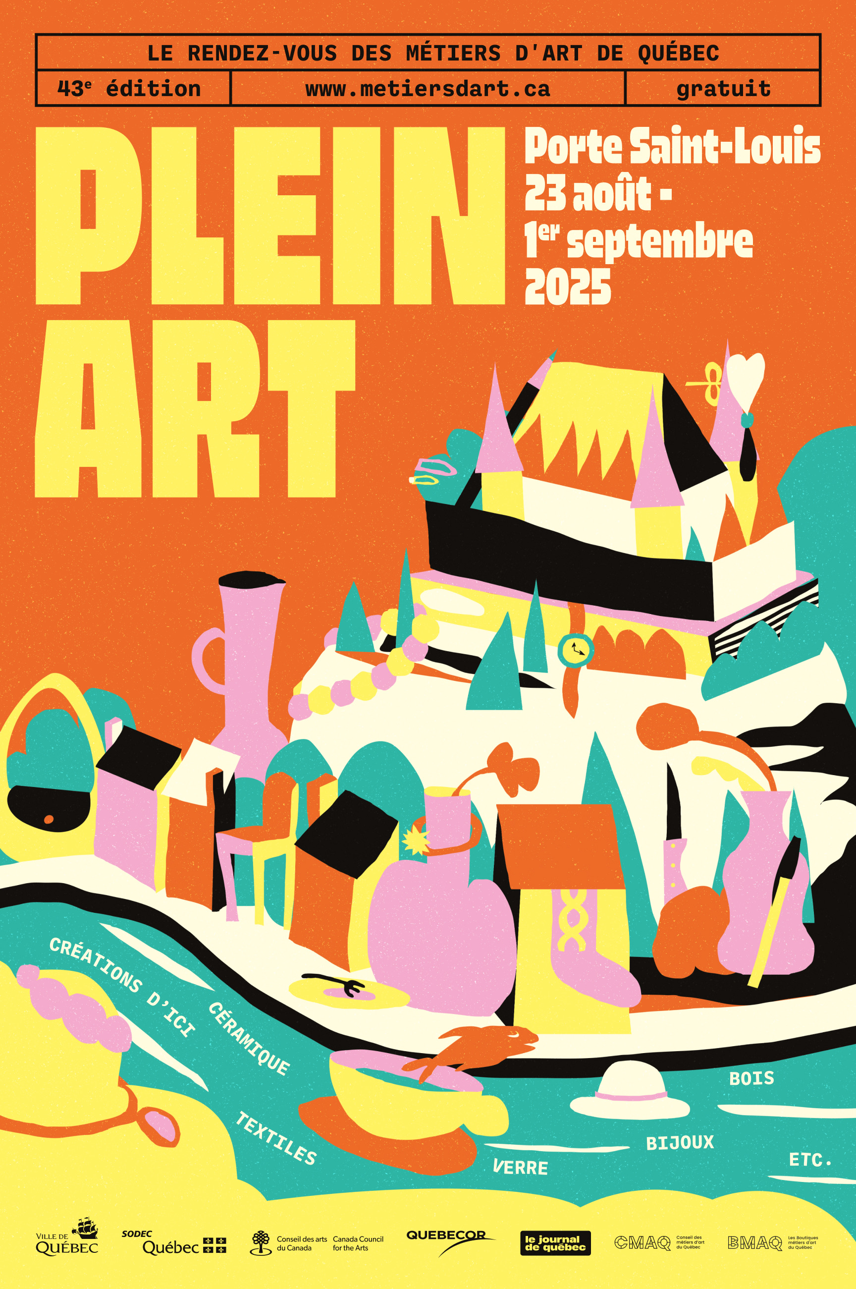 Depuis 1980, Plein Art est LE rendez-vous estival des métiers d’art à Québec. Pour sa 43ᵉ édition, le festival retrouve la Haute-Ville – Porte Saint-Louis, parc de l’Esplanade.