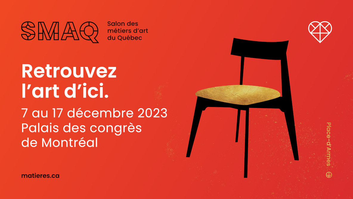 Montréal, le 15 novembre 2023 – Du 7 au 17 décembre 2023, célébrons la 67e édition du Salon des métiers d’art du Québec (SMAQ). Plus de 215 artisan.e.s professionnel.le.s des quatre coins du Québec vous invitent à préparer les Fêtes au Palais des congrès de Montréal sous le thème « Retrouvez l’art d’ici ». Tombez sous le charme du talent et des savoir-faire de la création québécoise, avec une édition toujours festive, urbaine, mode et écoresponsable. Des ateliers, conférences et expositions seront également du rendez-vous : une édition riche, marquée de rencontres, d’échanges et d’artisan.e.s fier.ère.s et passionné.e.s.