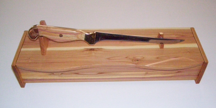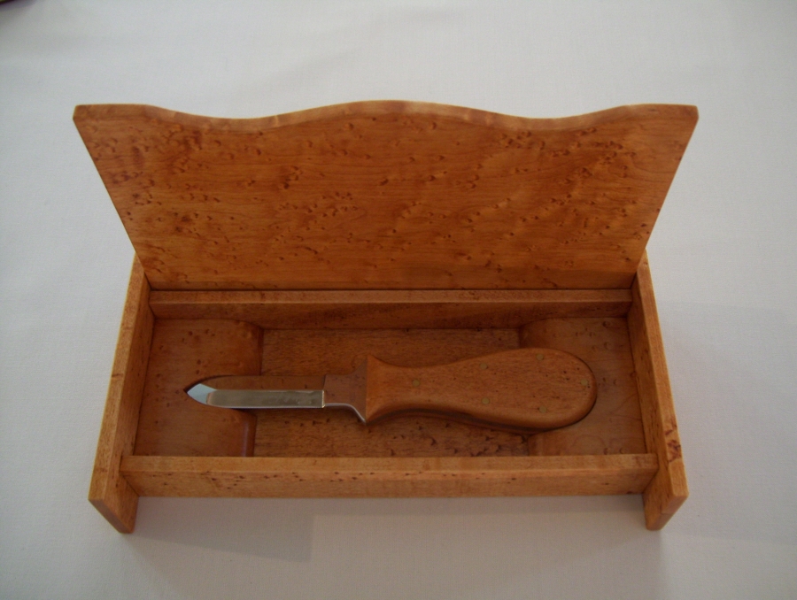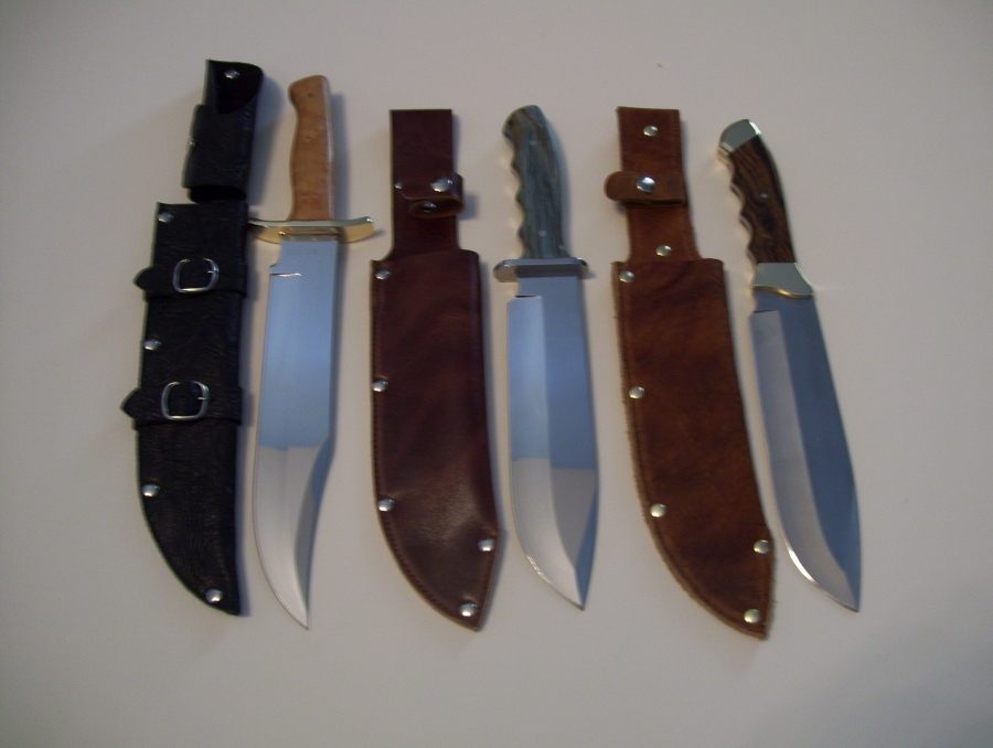 Couteaux in divers métaux (acier au carbone, acier inoxydable, cuivre, bronze, laiton et aluminium), réalisés en exemplaire unique par des techniques de coutellerie. Étuis, coffrets et supports pour couteaux, en bois et en cuir.