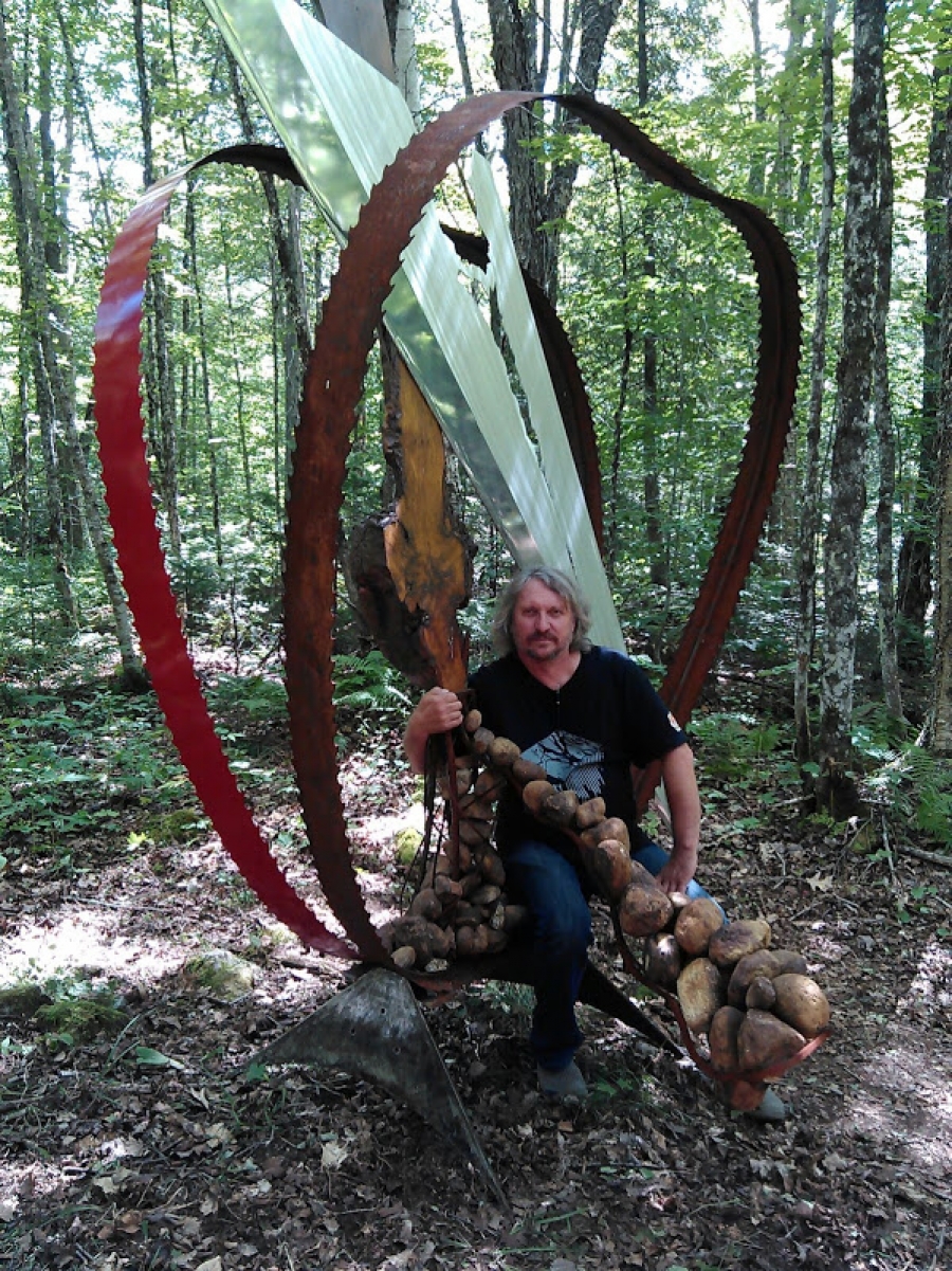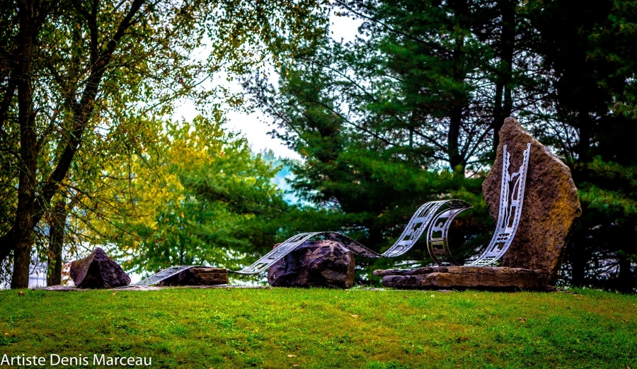 Denis Marceau est titulaire d’un baccalauréat en Arts à l’Université du Québec à Hull. Sa démarche vise à évoquer la fragilité de la vie, transcendant le tragique pour tendre vers l’expression de la beauté dans l’espoir. Les lames de scie qu’il utilise dans ses créations marquent les empreintes d’une mémoire éclatée. Ses œuvres questionnent les engagements sociaux que nous nous proposons. Dans sa jeune vingtaine il coordonne et réalise en collaboration, une première sculpture monumentale en aluminium soulignant le premier passage de la finale des Jeux du Québec en Outaouais. Pendant son séjour en Amérique latine, il laisse sur son passage une murale dans le grand hall d’entrée de l’hôtel Universo à Medellin, en Colombie. Il a été invité à exposer à la triennale de Besançon, en France. Il organise et participe aux expositions Art Eau Chutes de Denholm de 2012 à 2016. Il a été très actif depuis et cumule les reconnaissances pour son travail. En 2015, il accompagne les marcheurs, tous amis de Radio-Canada, jusqu’au parlement avec sa sculpture, intitulée Mémoire d’un Peuples. En 2016, il co-signe une œuvre publique monumentale avec trois de ses amis artistes, qu’ils érigent devant le Centre Carmen de Gatineau. En cette même année, il reçoit le prix du public pour sa sculpture de Recycl’Art de Gatineau. En 2017, il participe au Symposium d’art in situ de Plaisance, son œuvre reçoit le prix coup de cœur. Pendant plusieurs années, il fut entrepreneur en construction, développant davantage sa connaissance des matériaux et des techniques de construction, ce qui donne à son travail une assise supplémentaire. Très impliqué dans son milieu, il fonde un comité de citoyens pour revitaliser le Parc des Chutes de Denholm. Il organise des levées de fonds pour l’organisme Suicide-Détour dans le parc par des événements artistiques L’organisme gagne des prix pour son dévouement dans leur mission misant sur l’art et la santé mental. Gagnant du prix activité hivernale de plein air la plus loufoque ou inusitée édition 2015 à Plaisir d’hiver, décerné par Kino Québec. Art Eau Chutes, activité artistique d’envergure du comité de Denholm, fut lauréate de l’événement culturel et artistique de l’année 2015 décerné par la MRC Vallée de la Gatineau. En 2017, l’organisme Grands Frères et Grandes Sœurs de l’Outaouais lui offre un espace d’atelier afin de sensibiliser les jeunes par l’art. Il est attiré par les causes qui lui apportent un sentiment d’équilibre. Il est aussi administrateur au C.A. de Culture Outaouais et ainsi que du Centre d’art Contemporain de l’Outaouais (C.A.C.O.).