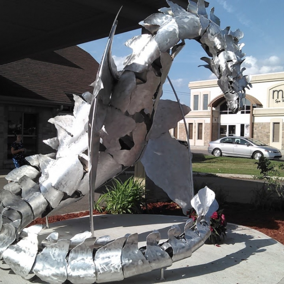 Sculptures en acier, aluminium, cuivre, pierre et bois, réalisées en exemplaire unique par des techniques de découpage et assemblage.