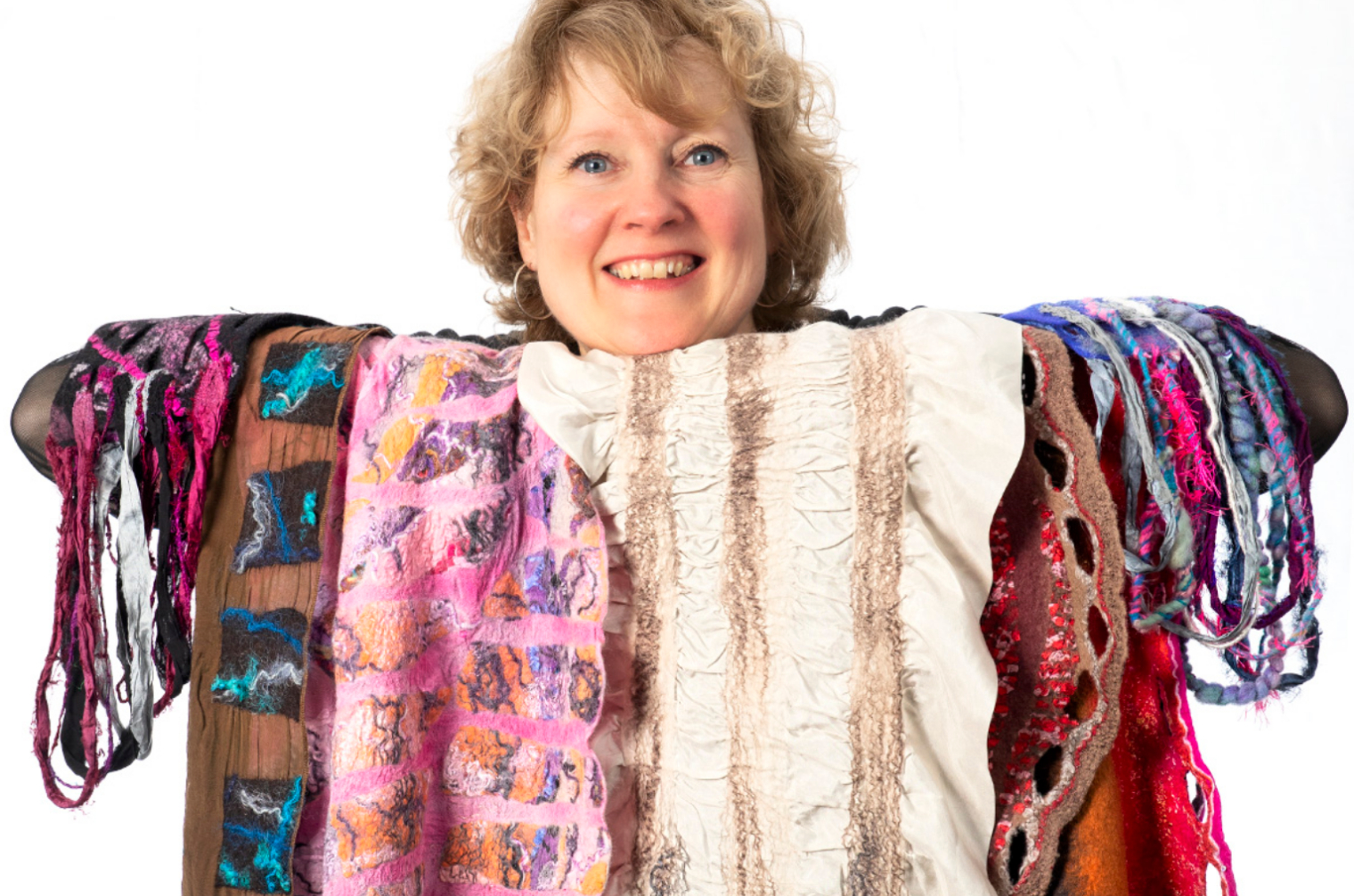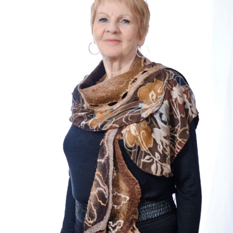 Vous pouvez trouver mes créations chez: Manufactum. Au Musée des Cultures du Monde 900 Boul. Louis-Frechette, Nicolet Qc, J3T 1E9 Tél : (819) 293-3360. Tout jeune, son père la surnommait "Ti-Oiseau". Après des études en dessin de mode, Martine Boulais est propriétaire d’une boutique de chapeaux. Sa créativité et sa dextérité lui valent pendant huit ans une clientèle fidèle. En 2007, elle découvre le feutrage de laine. À la fois fascinée et intriguée par cette matière, elle souhaite en savoir plus sur cette méthode de fabrication ancestrale. Cet art la passionne et nourrit son besoin de découverte, d’inspiration et de création. Elle découvre enfin le médium parfait pour exprimer sa passion pour la couleur et les textures et pour exploiter son bagage d’expériences passées. Puis, pour développer et perfectionner son art, elle suit de nombreux ateliers et formations avec des artistes régionaux et internationaux. C’est en Montérégie, en 2017 qu’elle ouvre chez elle son atelier de création pour y travailler à temps plein. Martine Boulais propose des créations faites main dotées d’une grande originalité. En effet, plusieurs sont réversibles et peuvent être portées de plusieurs façons. Ses techniques de prédilection : feutrage Nuno, feutrage humide, feutrage 3D, feutrage à l’aiguille, couture et tissage de perles.