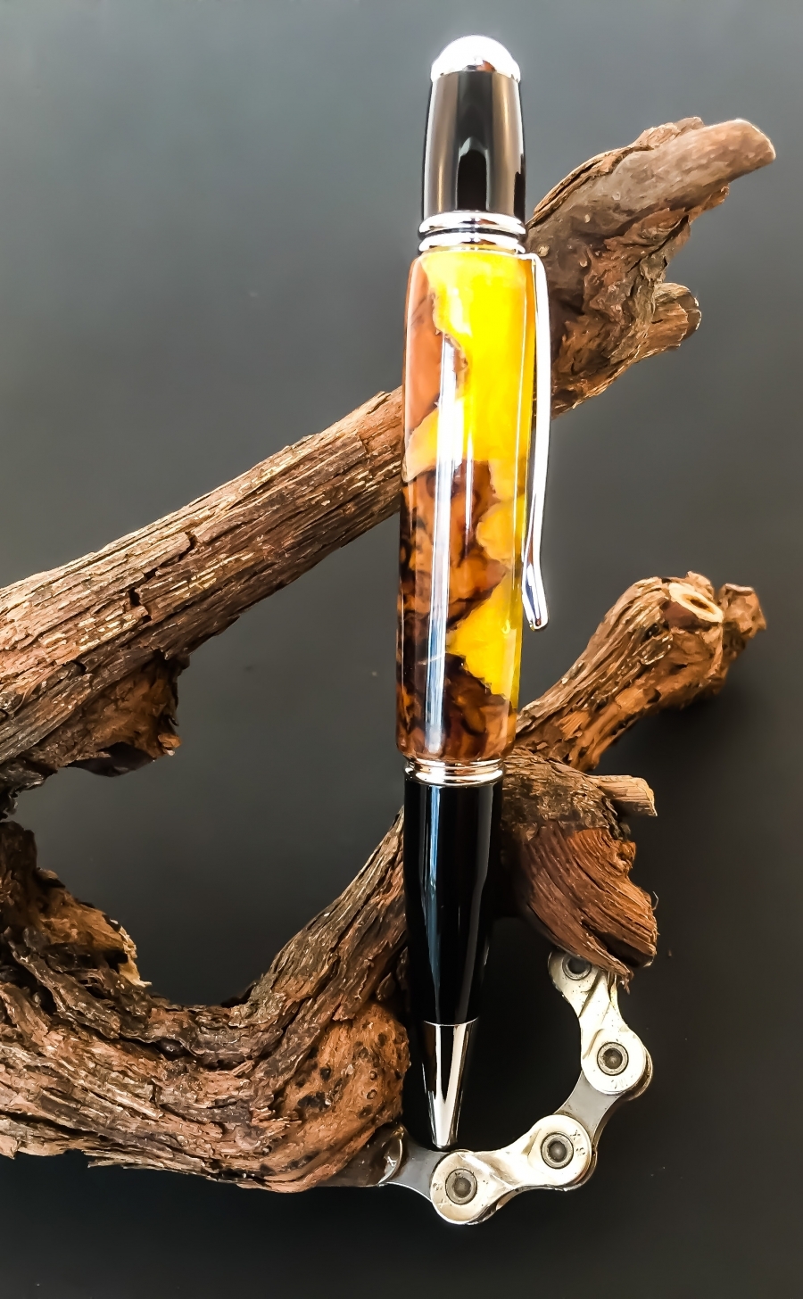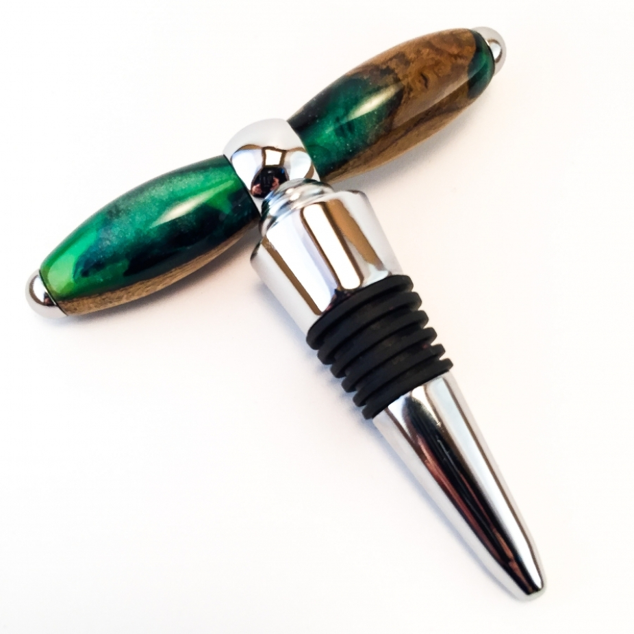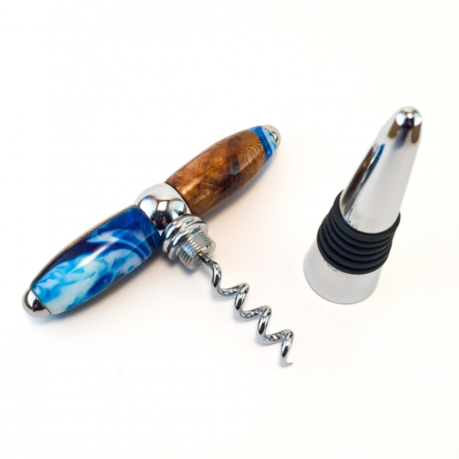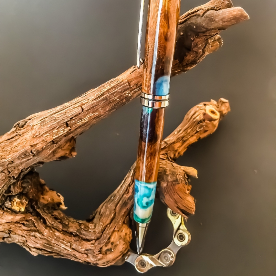 Ukulélés, objets utilitaires et bijoux en bois stabilisé et résine, réalisés en exemplaire unique et petite série par des techniques d’ébénisterie et de lutherie artisanales: stylos, bouchons, tire-bouchons, boutons.