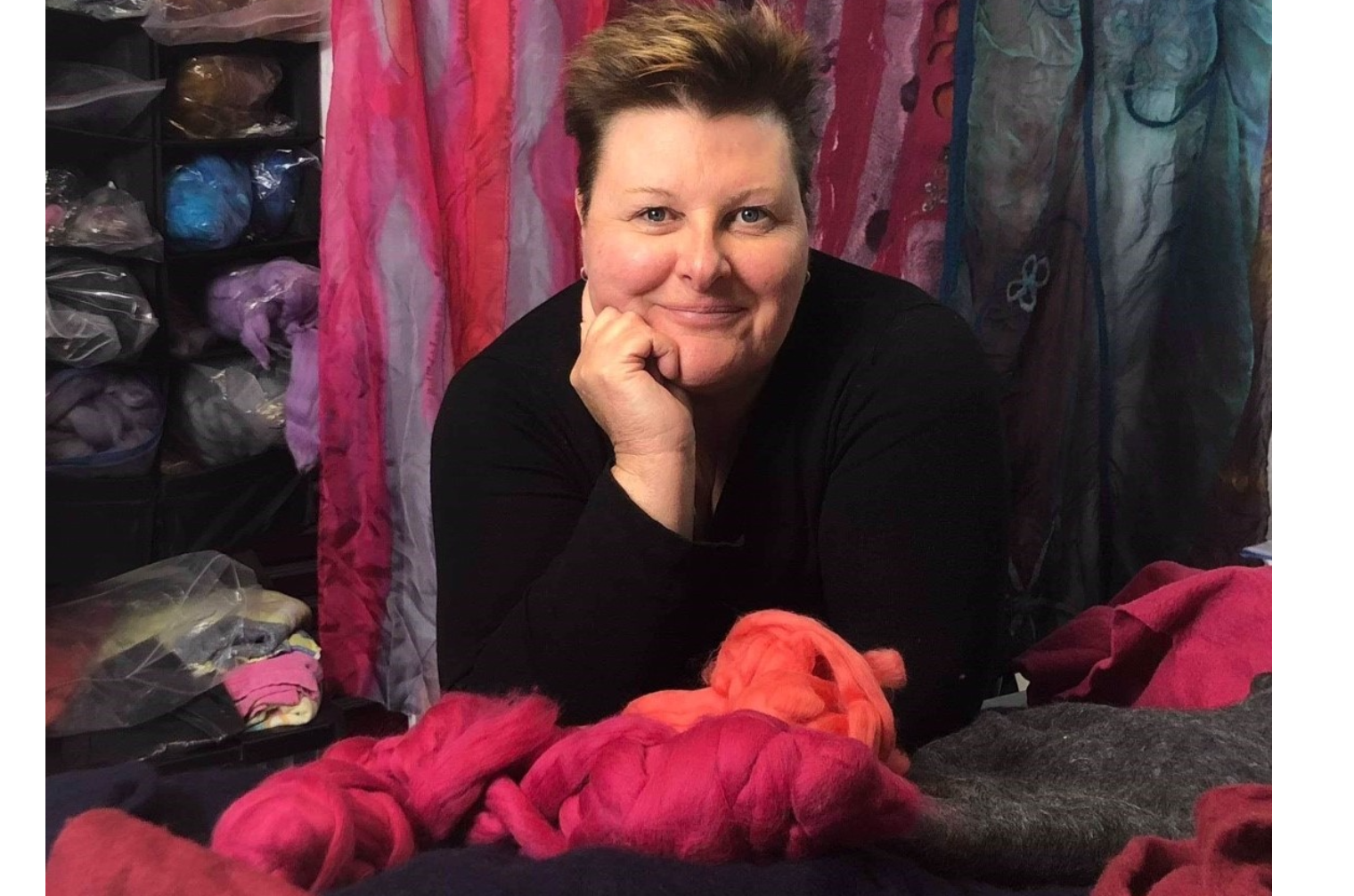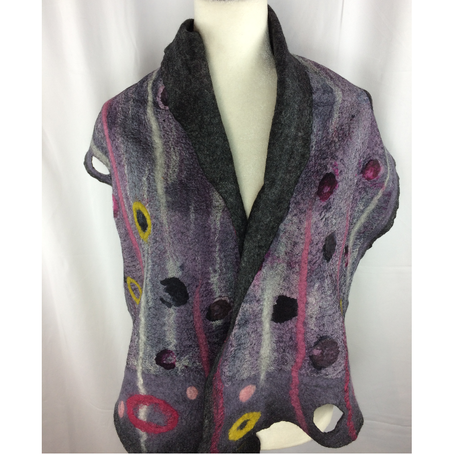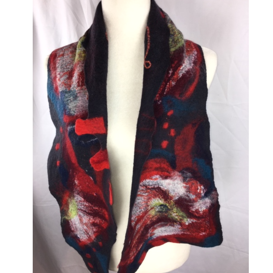 Dès l’adolescence, je me suis découvert une passion et une curiosité pour l’art et la création. J’ai tout d’abord choisi de m’exprimer par la peinture à l’huile par l’entremise de cours au début mais rapidement, j’ai débuté mes propres créations. Les couleurs, les fleurs m’attirent particulièrement et j’adore l’expression nette et précise de cet art. Ma rencontre avec le feutre est une révélation dès le départ. Ce médium me permet de m’exprimer comme avec la peinture mais avec moins de restriction totalement libre de mon inspiration du moment. Les couleurs vibrantes se croisent au gré de mon humeur mais aussi des matériaux qui me tombent sous la main; la soie, les fibres, les bouts de laine….. Je couche mes idées directement sur la fibre, sans croquis ni dessin. Tout au cours de la manipulation de la fibre, la création suit son chemin, créant une œuvre textile d’exception d’un design unique. Passionnée, je crée pour m’évader. Le feutre sait m’enflammer à chaque création et je demeure toujours soucieuse de sa qualité. Cette technique millénaire, je la fais mienne avec une touche contemporaine, colorée et d’élégante.