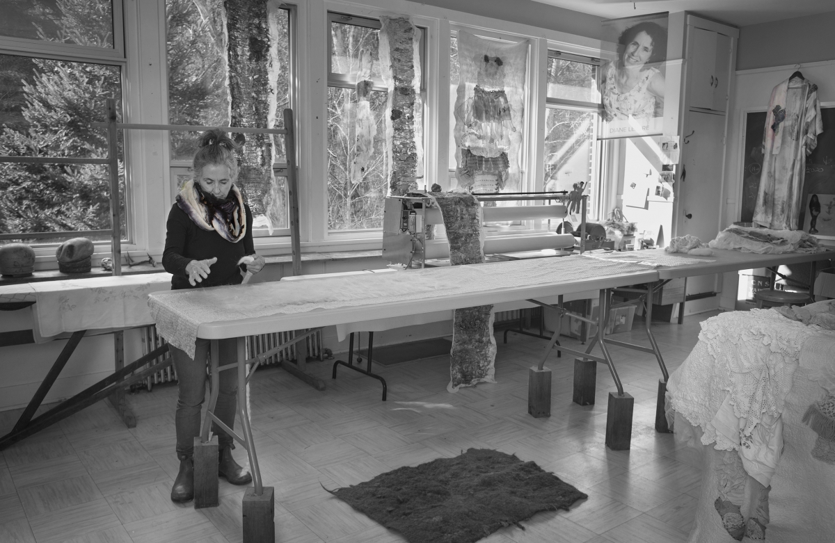 LAURÉATE DU PRIX DE LA TRIENNALE EN MÉTIERS D’ART DE L’ABITIBI-TÉMISCAMINGUE (région Outaouais - 21 juin 2018) Diane Lemire tire son inspiration du monde qui l’entoure pour créer des sculptures en techniques mixtes, de l’art textile et des tableaux qui évoquent subtilement la mémoire, le temps et le lieu. Depuis 15 ans, elle découvre et expérimente les nombreuses techniques de feutrage. Elle se laisse séduire par cet art ancien du travail de la laine en explorant constamment la fusion de fibres naturelles et de matières récupérées. Diane Lemire est née à Val d’Or, au Québec (Canada). Elle a passé sa jeunesse à voyager et à travailler à l’étranger, avant d’étudier les beaux-arts à l’Université d’Ottawa. Elle a reçu le prix du Mississippi Valley Textile Museum en 2010 et en 2014. Diane a exposé au Canada et en Europe, et ses œuvres se retrouvent dans des collections privées et publiques.