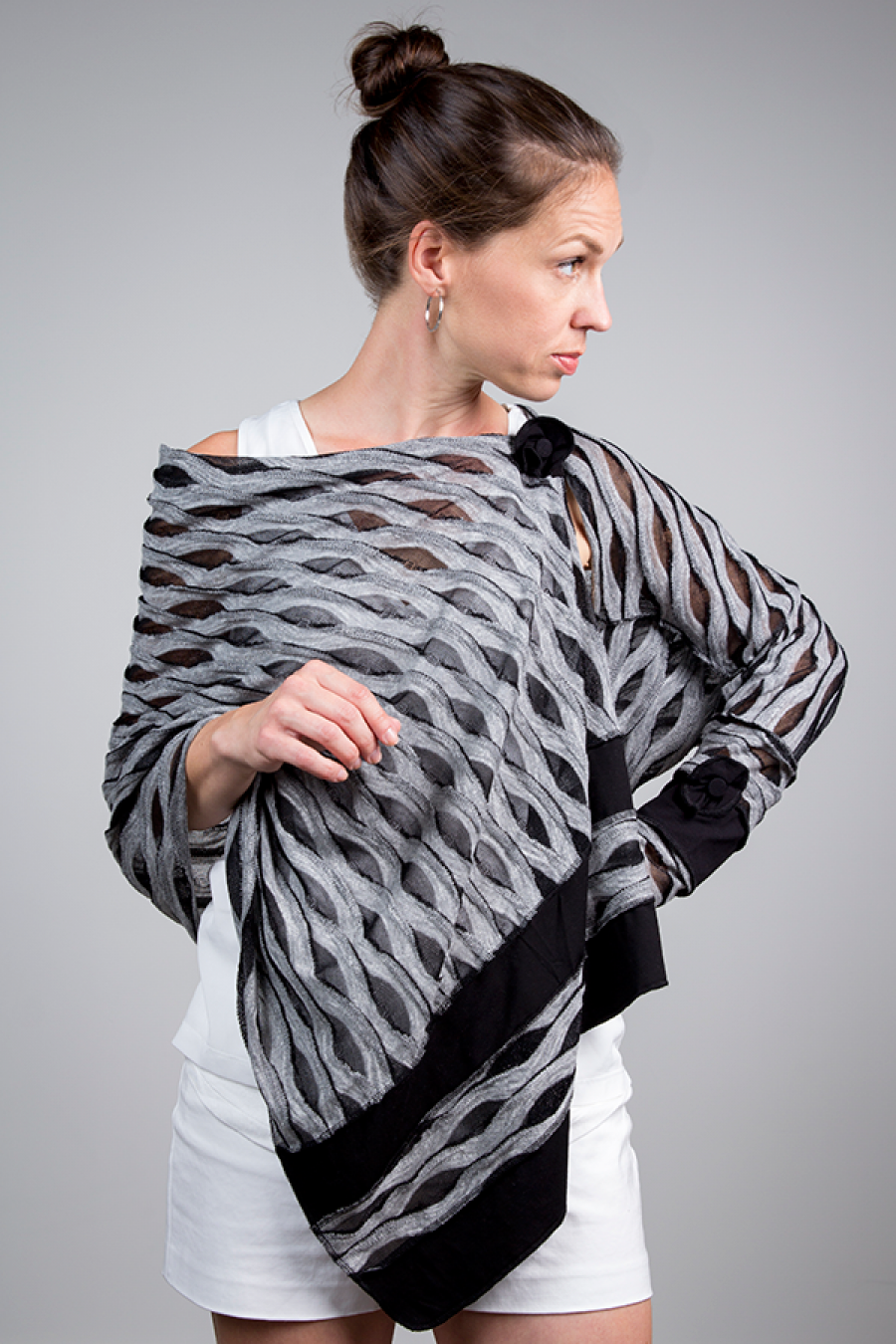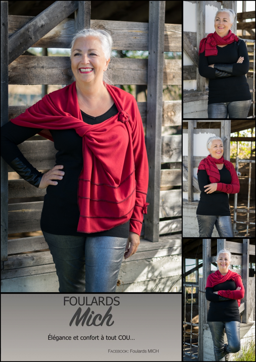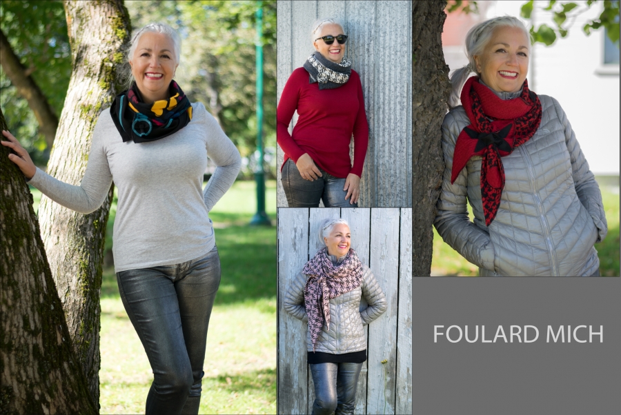 Accessoires vestimentaires, réalisés en petite série par des techniques de couture : écharpes, foulards, tuques, capes, etc.