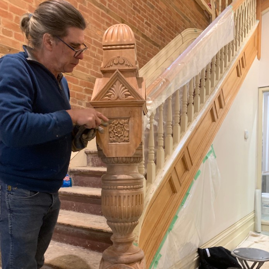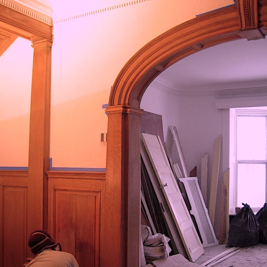 Décapages de boiseries, escaliers, portes, fenêtres, moulures et plinthes. Réhabilitation de boiseries architecturales, portes, arches etc par des techniques traditionnelles d’ébénisterie. Retouches, reproduction, faux-finis avec pigments de couleur, teinture, finition et vernis.