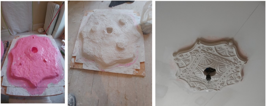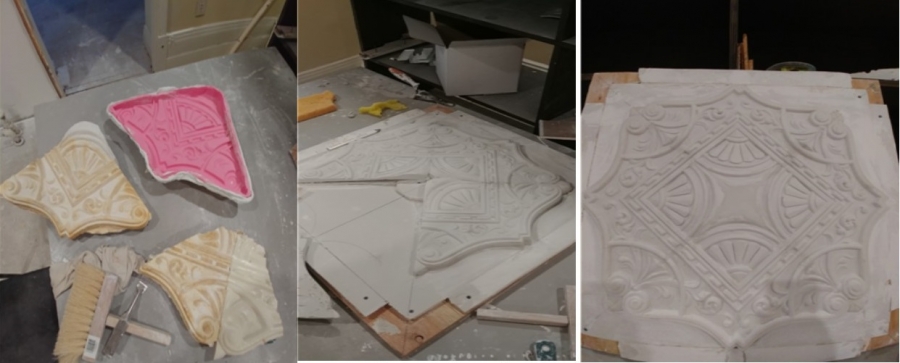 Réalisation et restauration d’éléments architecturaux en plâtre par des techniques de modelage, moulage et coulage.