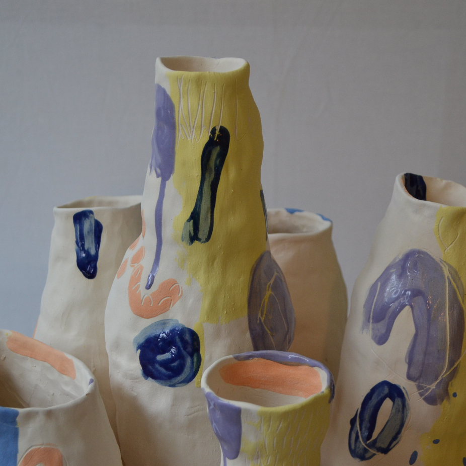 Isabelle Simard est une artiste céramiste, fleuriste et horticultrice. Ses différentes postures lui permettent d’étudier l’intemporalité et la précarité de la matière, c’est-à-dire de travailler avec la nature et non contre elle. Son travail est contemporain et instinctif : les motifs évoluent en fonction du geste et de l’humeur, qui évoque, pour elle, le moment présent. L’intuition la guide dans chaque geste et c’est ce qui construit son travail dans une expression directe et non formelle. Depuis sa résidence en céramique a Rozynski, elle développe l’approche sculpturale de son travail. Pour elle, l’objet du quotidien est une pièce unique que chacun choisira pour ses qualités artisanales et ludiques, bien au-delà de l’utilitaire et du sacré. @simardceramique