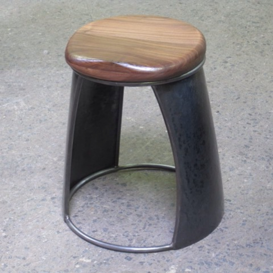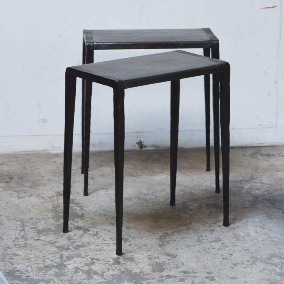Restauration de pièces architecturales. Meubles et objets utilitaires principalement en acier et fer, réalisés en exemplaire unique et petite série par des technique de forgeage, martelage et usinage : tables, paroirs, seaux, tabouret, trophées, etc.