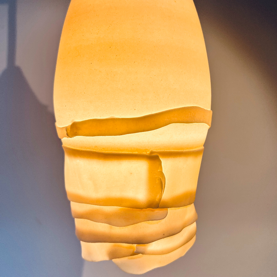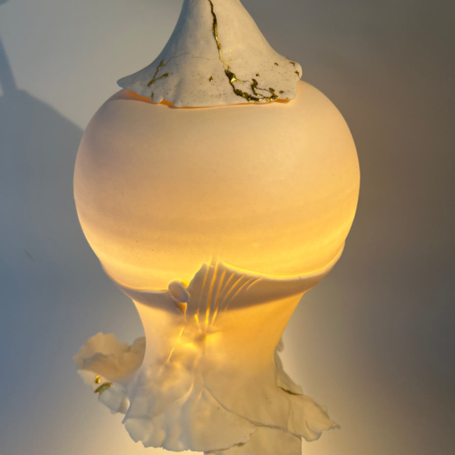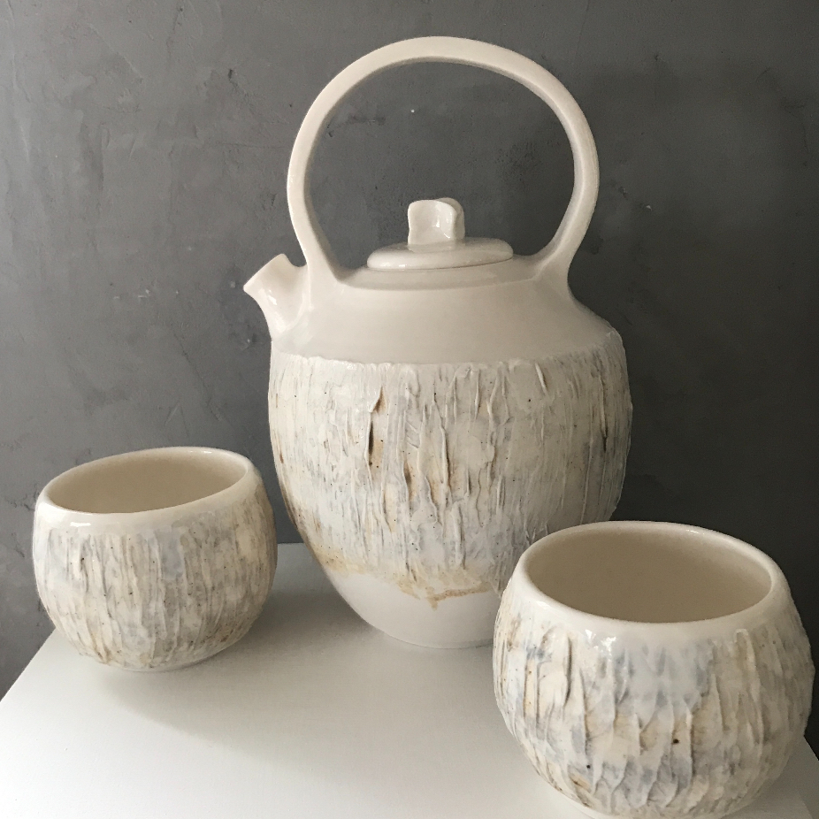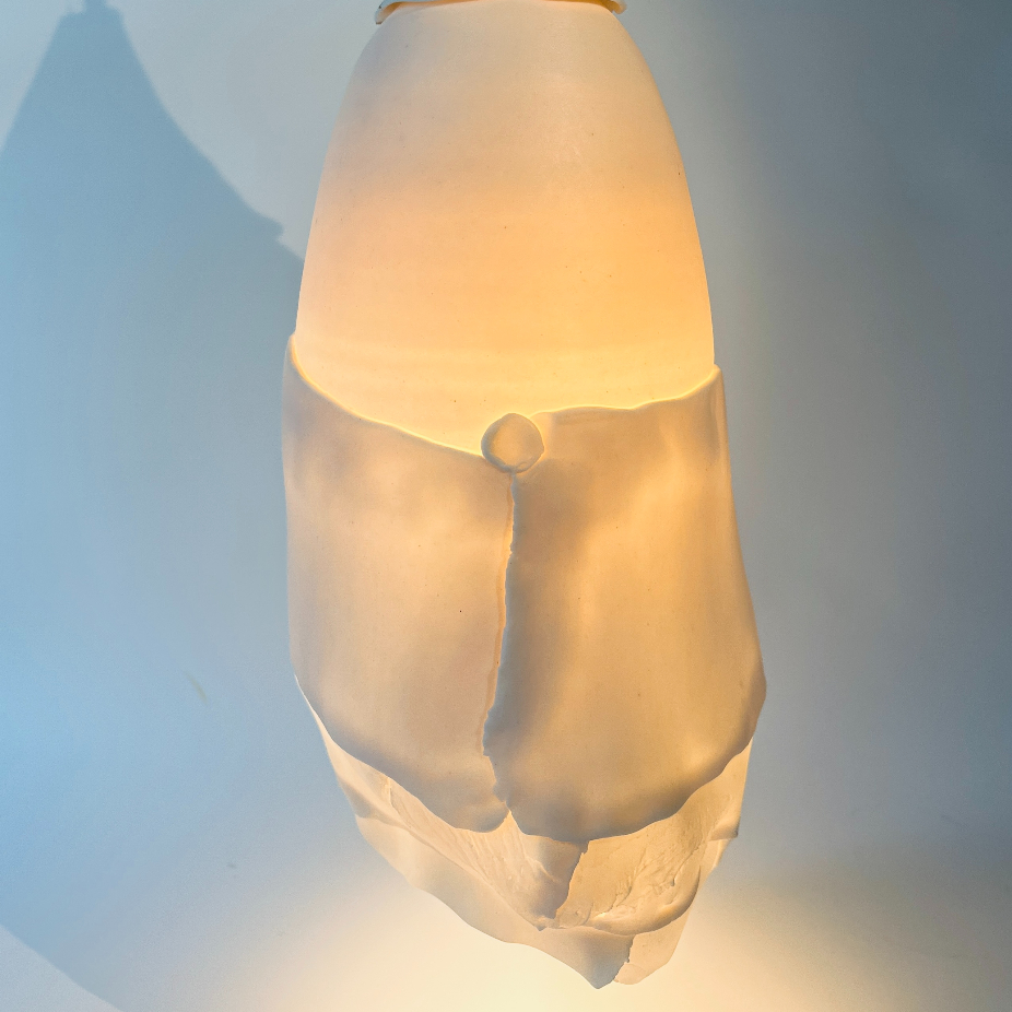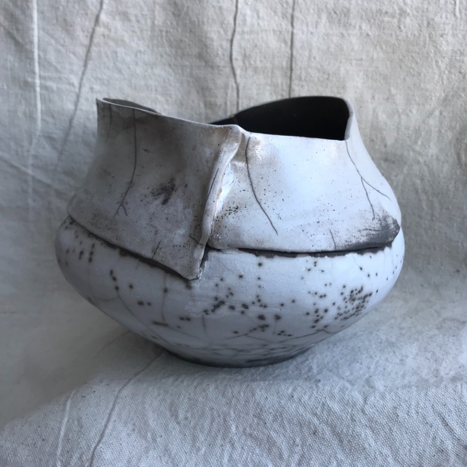 Céramiques et porcelaines décoratives et/ou utilitaires, tournées, puis façonnées pour obtenir des formes organiques. Urnes funéraires technique raku et/ou obvara avec bois flottés.