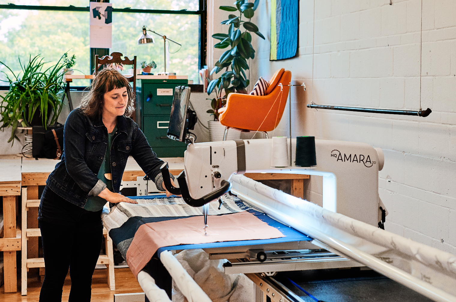 Derrière Le point visible se cache Marilyn, courtepointière. Elle crée des courtepointes modernes de qualité pour votre quotidien. Ses expériences en couture remonte à plus de 24 ans, quand elle a appris par sa grand-mère les bases. Élevée par elle et ses tantes couturières, elle a reçu l’enseignement de la couture depuis qu’elle est toute petite. Déjà, on la trouvait en flagrant délit de coudre toutes les retailles qu’elle trouvait. Elle commençait, sans même le savoir, à développer ce qui est rendu aujourd’hui, une passion. Depuis 2016, elle a redécouvert la courtepointe grâce à une mentor, France Verrier, fermière du Cercle des fermières de Cowansville et spécialiste de la courtepointe. Elle lui a appris de façon intensive depuis leur rencontre toutes les techniques et rudiments de cet art du patrimoine.