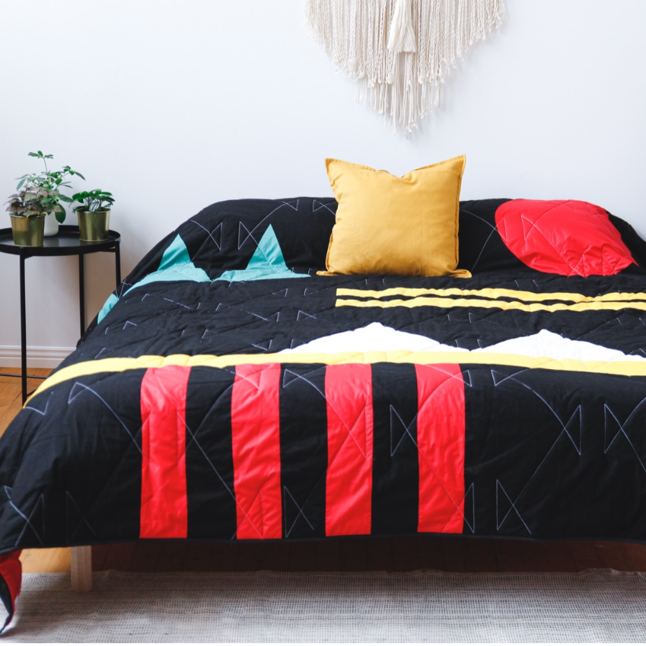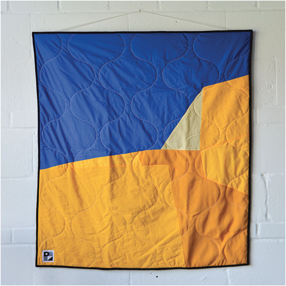 Couvertures de lit et accessoires en courtepointe, à partir de fibres surcyclées de coton, lin, laine et polyester. Les pièces sont réalisées en mini séries ou pièces uniques.