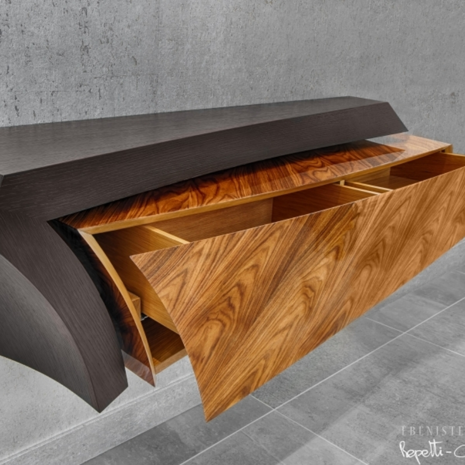 Meubles et éléments architecturaux en bois massif, placage et matériaux dérivés du bois, réalisés en exemplaire unique par des techniques d’ébénisterie traditionnelle.