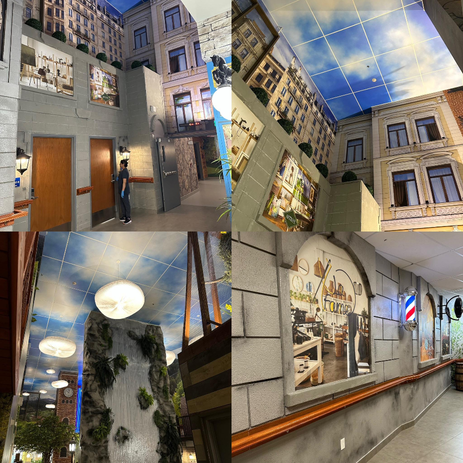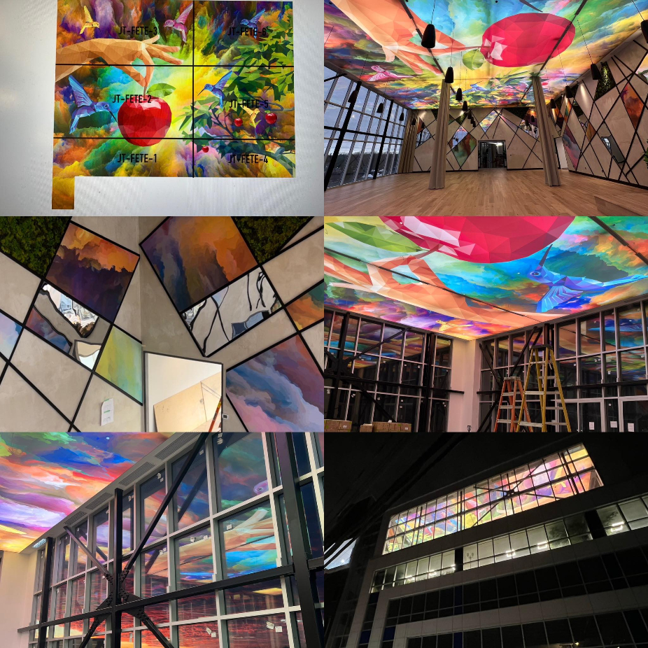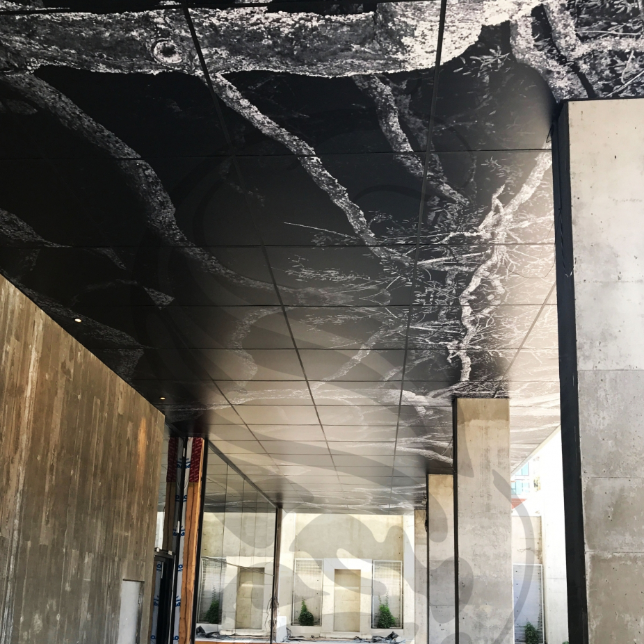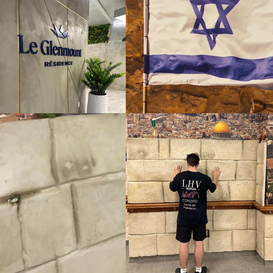 Décorations murales, décors sur panneaux, panneaux de faux finis béton appelé Cemento, panneaux de résine Artlux, faux fini de béton sur gypse Cemento
