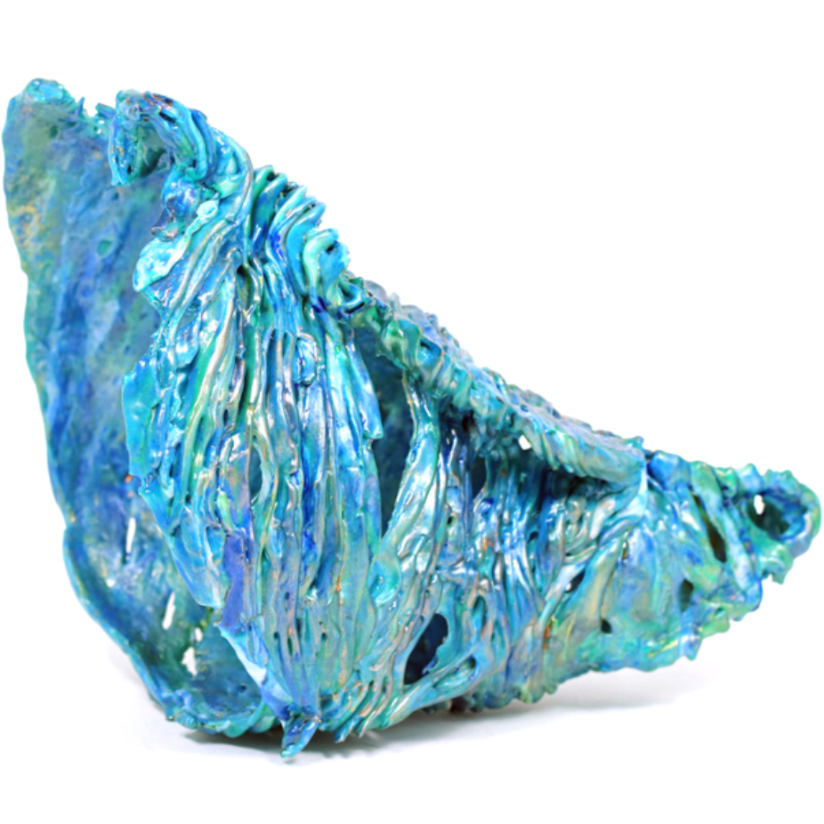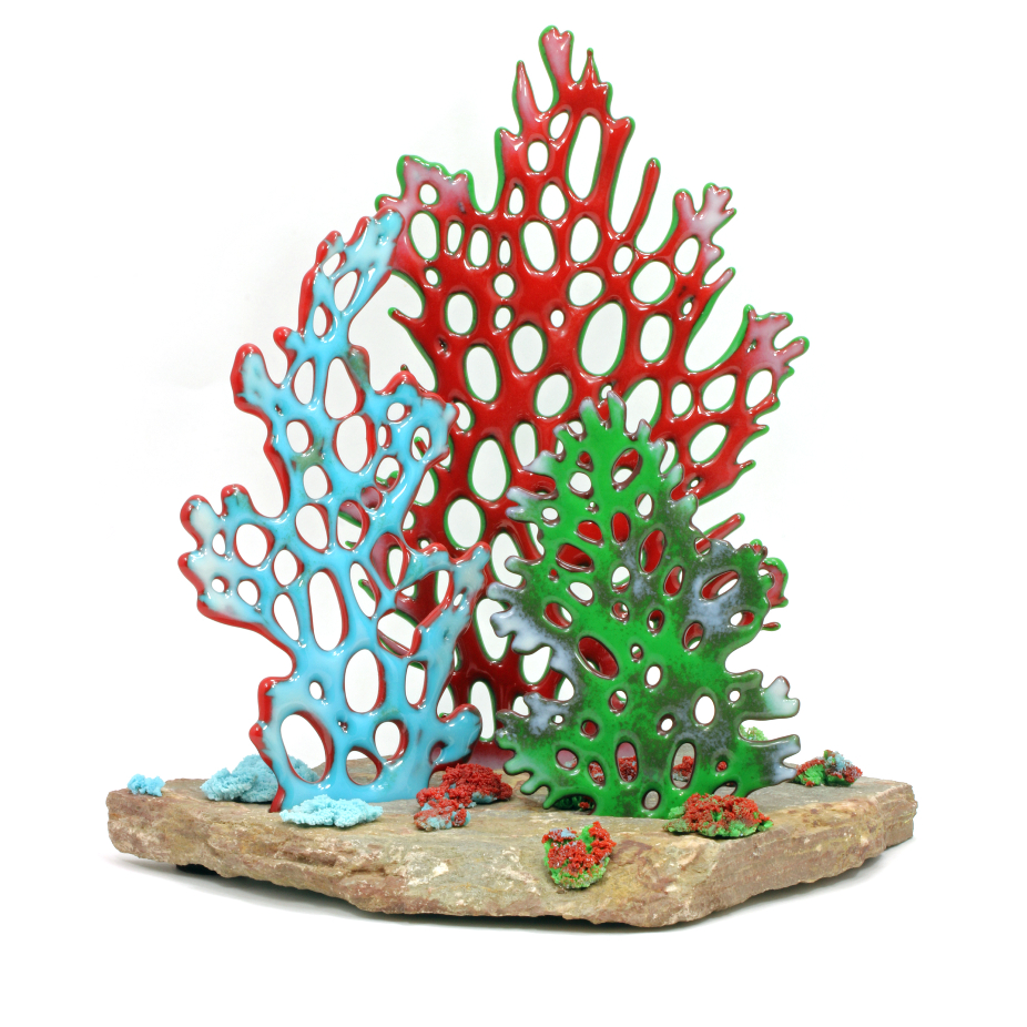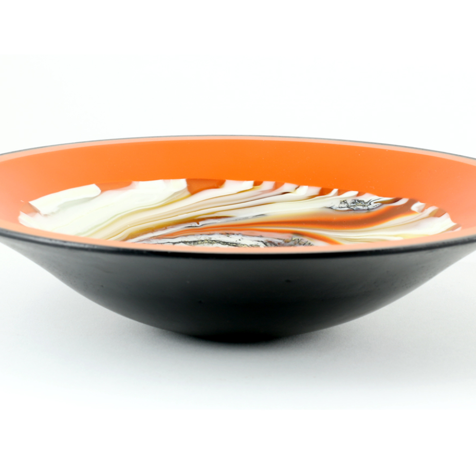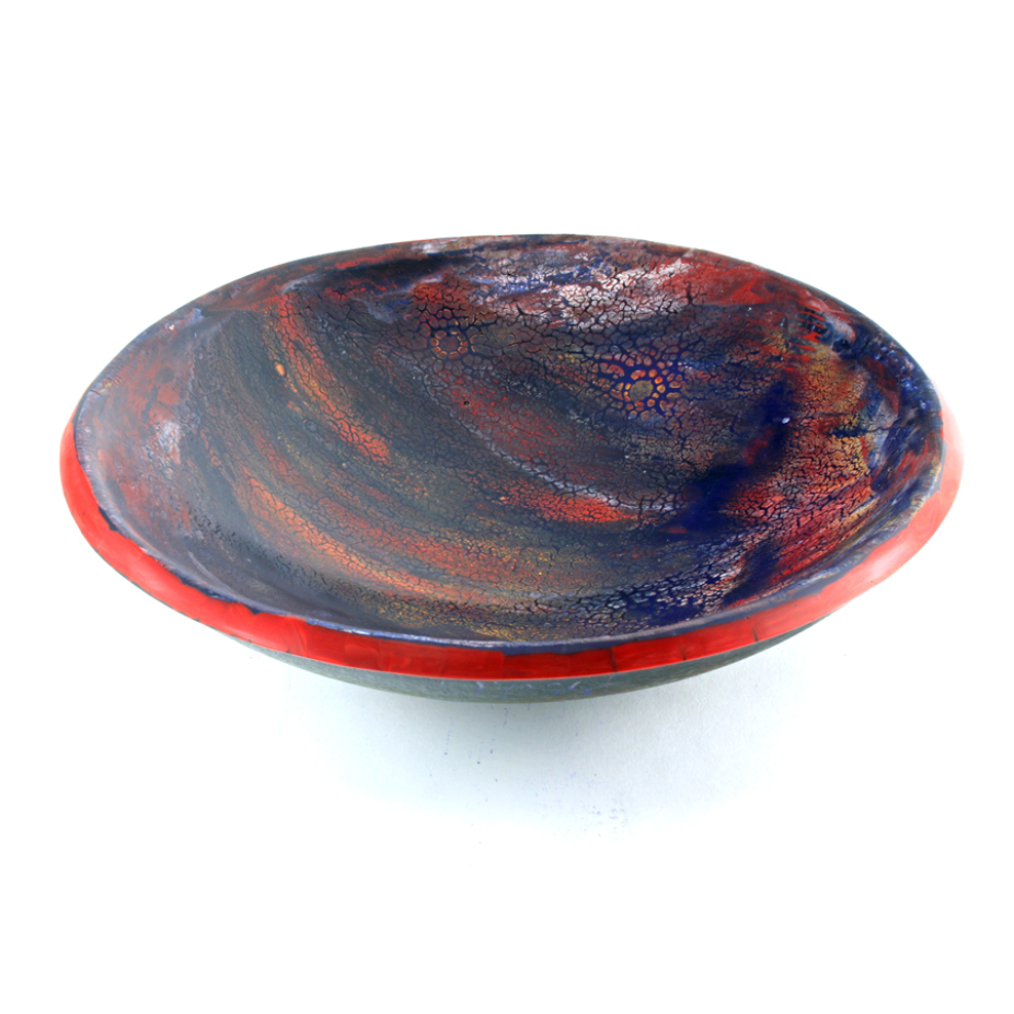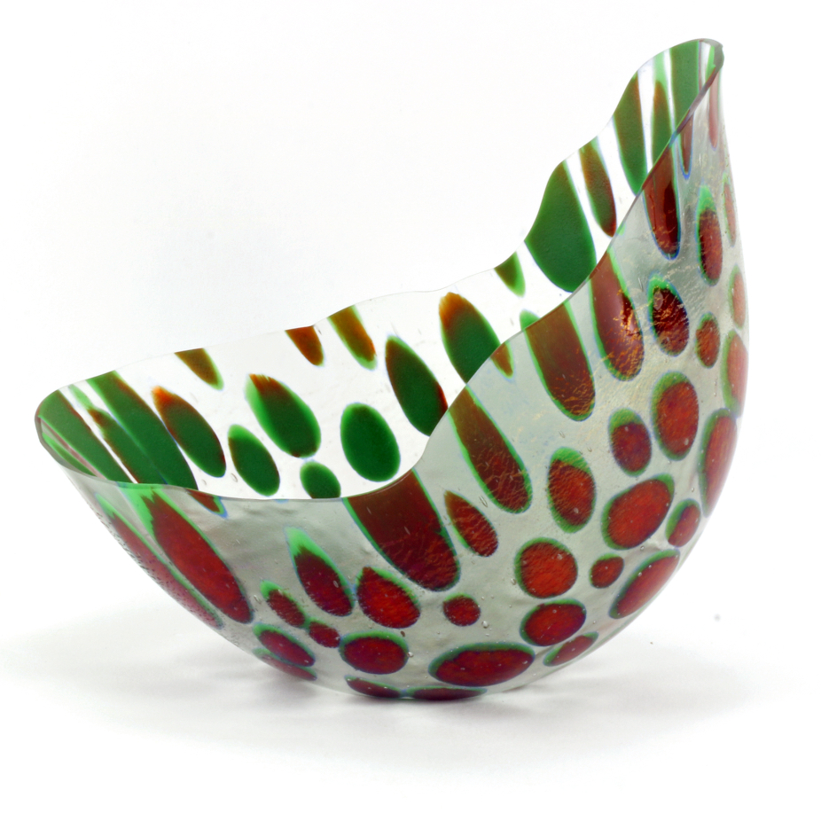 Vases, sculptures et panneaux en verre réalisés en exemplaire unique à l’aide de différentes techniques de verre fusionné.