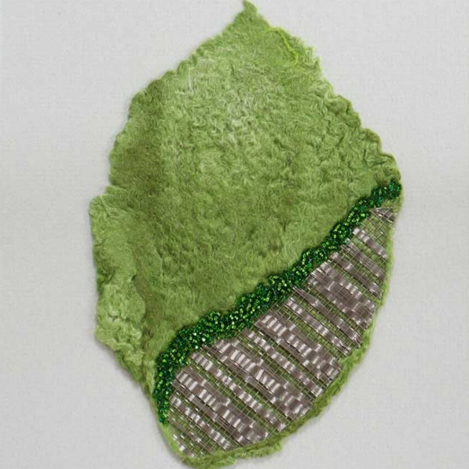 Bijoux tissées en acier inoxydable Sculptures avec tissage d’inox et autres matériaux Tableaux mélangeant du tissage d’acier inoxydable, feutre, macramé, insertion de perles et autres techniques provenant du textile.