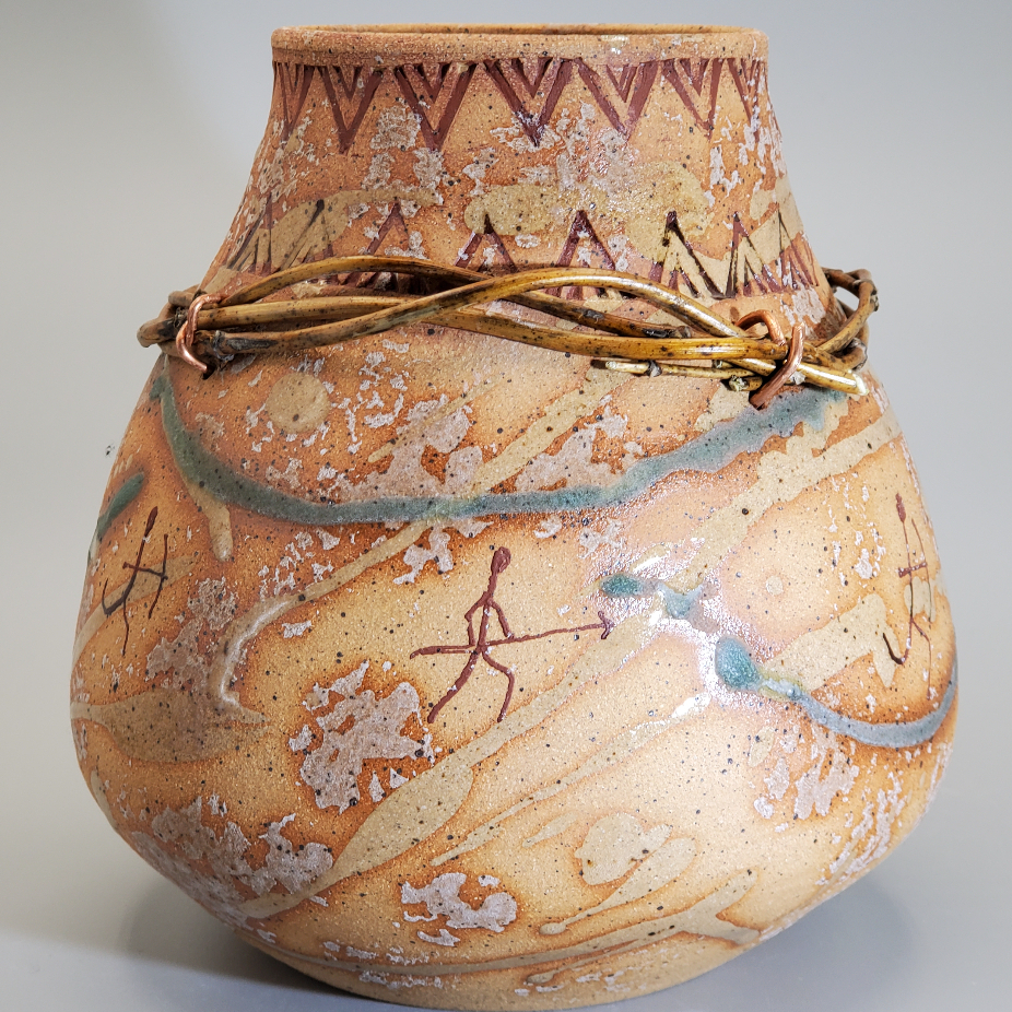 Ma démarche est intimement liée à une quête identitaire de mes racines et au désir de me réapproprier l’héritage culturel que m’ont légué mes ancêtres Hurons Wendat « le peuple insulaire ». Naviguant entre les modes traditionnels et actuels, mes créations se distinguent par le caractère organique, voire primitif, qu’elles dégagent. La juxtaposition de l’argile brute et des décors de surface confère à mes pièces un attrait singulier et intemporel. Mon processus créatif trouve également sa source dans l’art rupestre que m’inspirent les pictogrammes et pétroglyphes.
