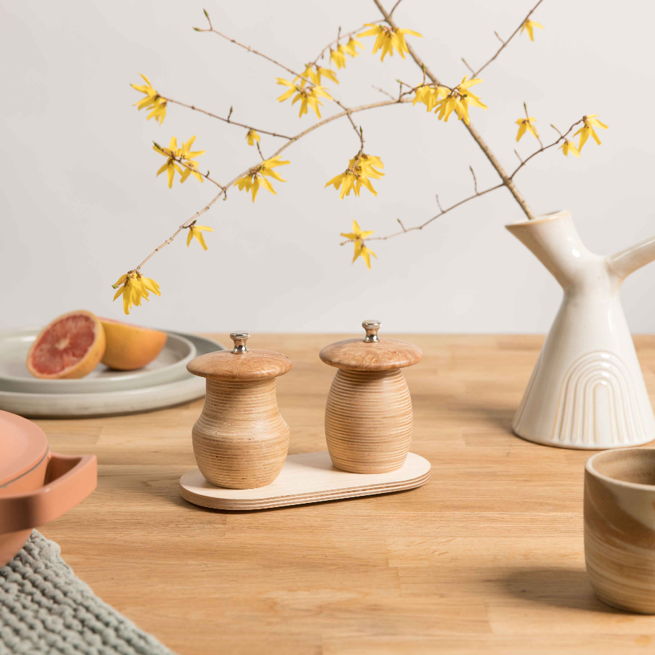 Une histoire d’amitié. Aujourd’hui, Mélanie et François fabriquent de leurs mains les mêmes salières et poivrières que Sylvain Tremblay lui-même avait imaginées et créées. Dans leur petit atelier, en Estrie, ils s’appliquent à faire revivre l’art de leur ami parti, entourés de la même odeur de bois frais. Sylvain était un amoureux du bois, élevé par un homme qui partageait la même passion. Après son départ, des milliers de salières et poivrières ornaient déjà les tables du monde entier. Mais son art n’était pas prêt à disparaître. Parce que deux amis étaient prêts à reprendre le flambeau. Et parce que Sylvain misait sur la qualité et la robustesse de ses produits : des produits qui continueront d’orner nos tables pour les décennies à venir. Chacune de nos œuvres est un hommage au travail incroyable d’un artiste qui aura marqué l’univers des métiers d’arts au Québec. Et elles n’attendent que votre table. « Leur élégance est seulement le début de l’histoire » Sylvain Tremblay nous a quitté le 2 juin 2019.