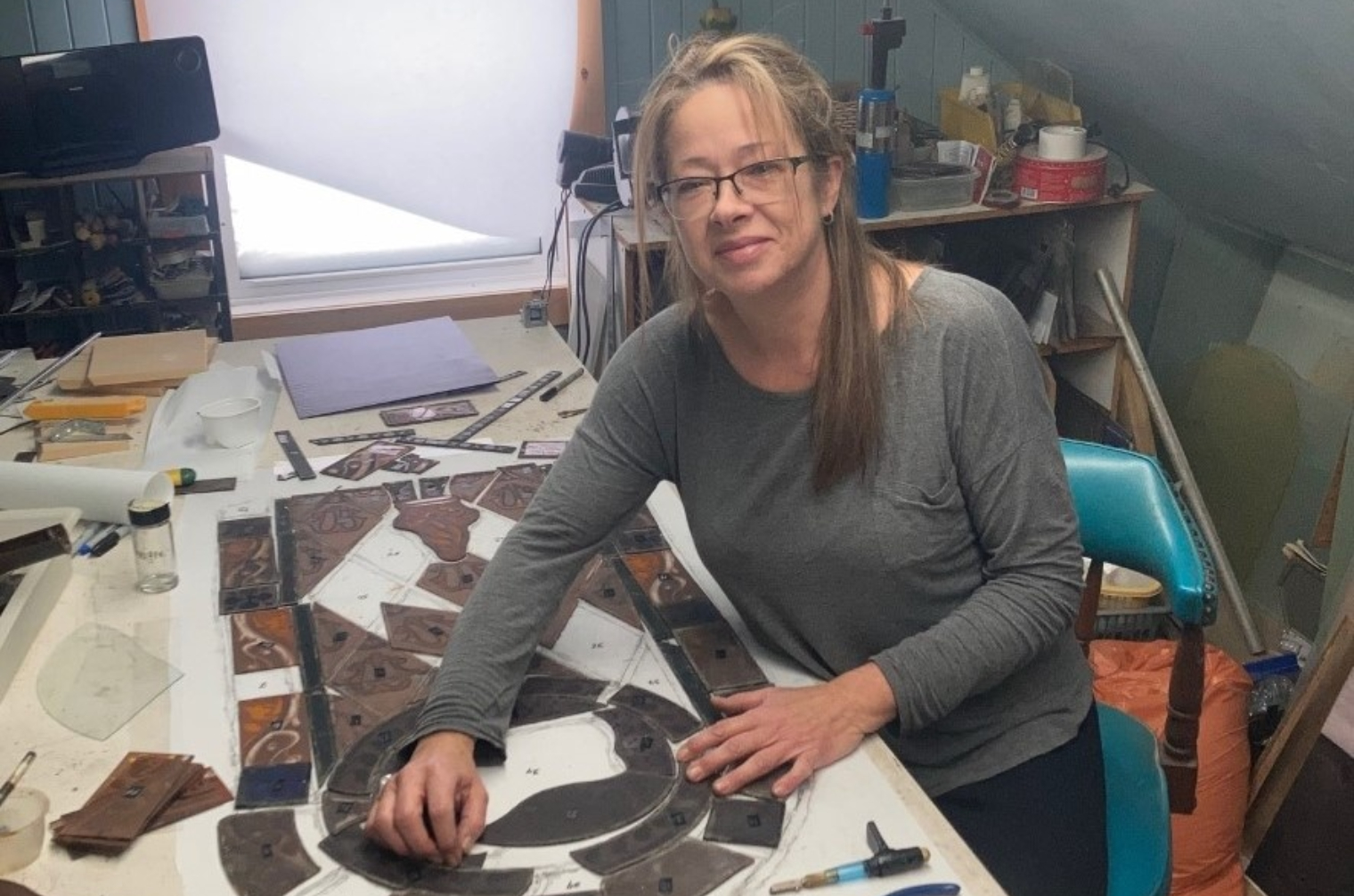 Martine Bonin est une artisane spécialisée en art verrier, qui pratique son métier depuis maintenant 30 ans. Au fil des ans, elle a participé à plusieurs formations partout dans le monde et exposé dans maintes galeries. Elle maîtrise un grand nombre de techniques et œuvre dans le domaine de la restauration de vitraux depuis le début de sa pratique professionnelle. On fait régulièrement appel à elle pour la restauration de vitraux d’églises et parfois pour des particuliers. Elle vise par cette pratique à redorer le blason de notre si beau patrimoine bâti dans le plus grand respect de l’art.