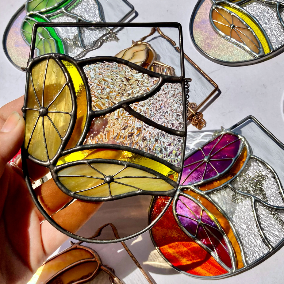 Isabelle Raymond est designer de métier mais elle utilise maintenant son savoir-faire et sa créativité pour créer des vitraux modernes. Elle a transitionné de sa carrière en design événementiel vers le vitrail à temps plein à l’automne 2020. Elle vends ses créations en ligne via son site internet et ses média sociaux ainsi qu’en personne quelques fois par année à l’occasion de marchés artisans. Elle restaure des vitraux sur demande et fabrique également des pièces sur mesure. Elle enseigne le vitrail au ruban de cuivre aux Affûtés (Petite-Italie puis Mile-X) depuis l’automne 2022 et elle a également enseigné au Studio du Verre dans le Vieux-Montréal, de janvier 2022 à juillet 2025.