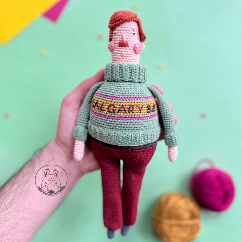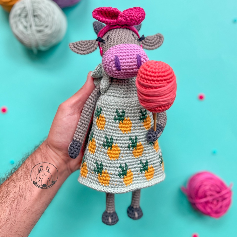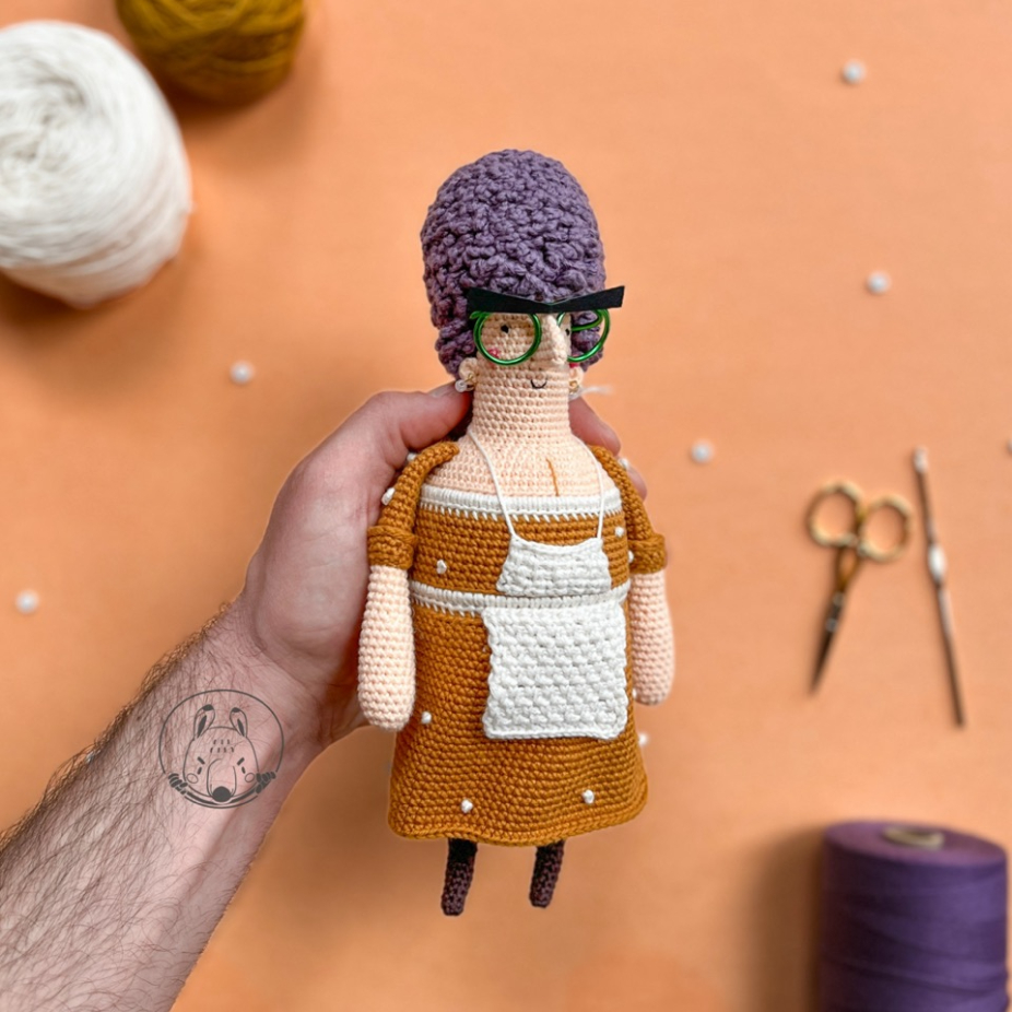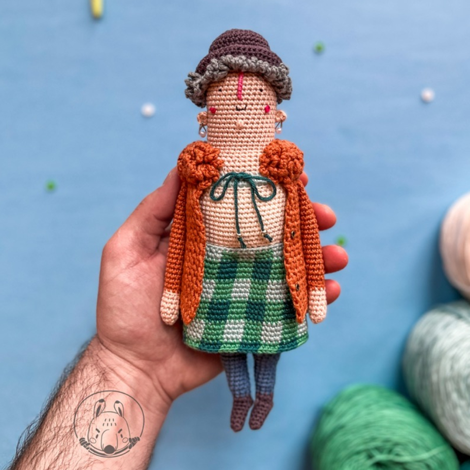 Personnages tridimensionnels en fil de coton utilisant la technique du crochet.