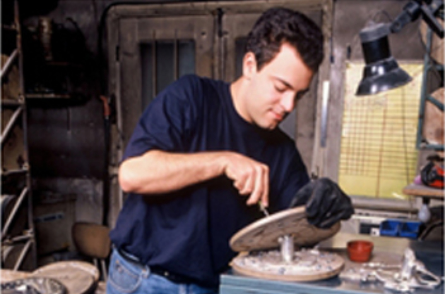 L’atelier du maître-artisan Antoine Chaudron est situé dans les Laurentides, au coeur du village de Val-David. Depuis plus de 25 ans, qu’Antoine assure la relève au sein de l’entreprise familiale. Dans son atelier, il y produit principalement de la poterie d’étain : ses incontournables lampes à huile, vases, coqs, pièces décoratives et accessoires de la table... Nos étains sont fabriqués à partir d’un alliage qui contient, selon les normes nord-américaines, au moins 92 % d’étain, de l’antimoine et du cuivre. Cet alliage sans plomb est, par conséquent, non toxique, ne transmet aucun goût et ne noircit jamais. Les pièces sont façonnées à la main, selon des méthodes très anciennes et leur fini sera martelé, texturé, satiné, poli ou encore gravé par des éléments de la nature.