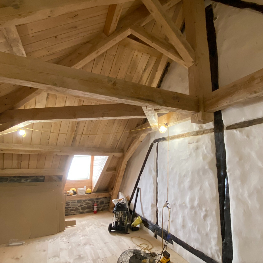 Avec plus de 15 ans d’expérience en construction, dont huit en tant que contremaître de chantier, Jérémie Abbate se spécialise dans le traçage, le taillage et l’assemblage de charpentes traditionnelles. Ainsi, en collaboration avec architectes et ingénieurs, il construit des charpentes uniques en harmonie avec les attentes de chaque client.