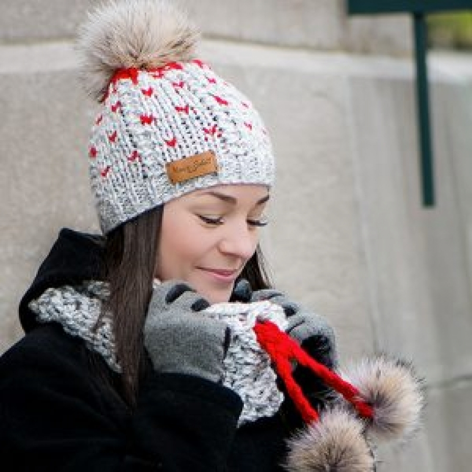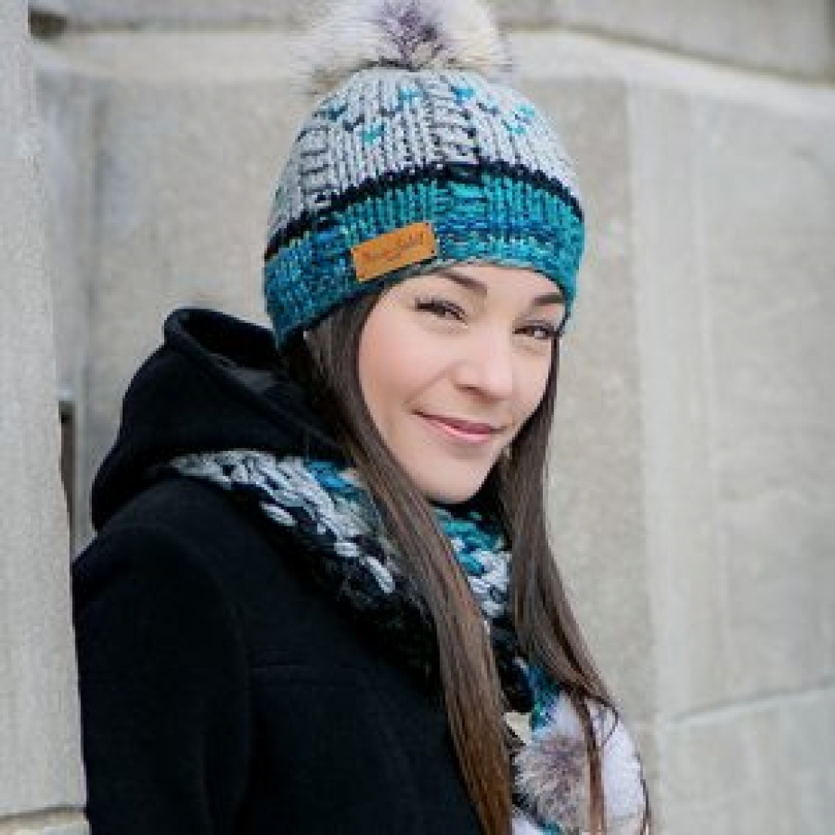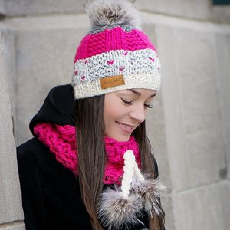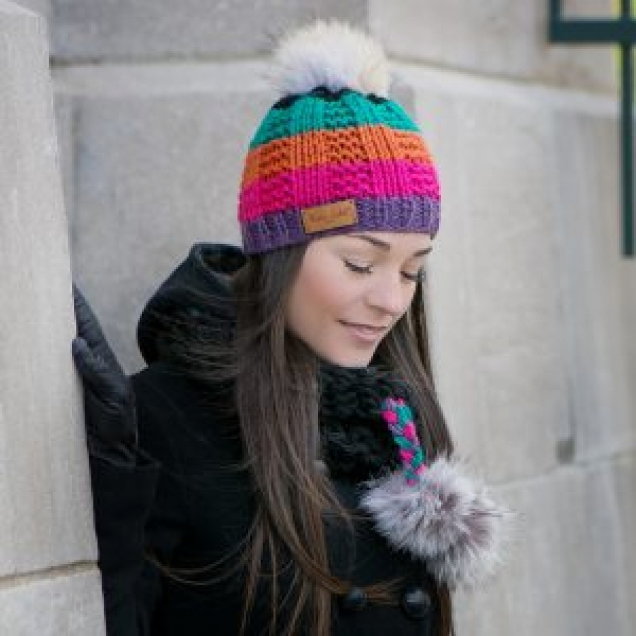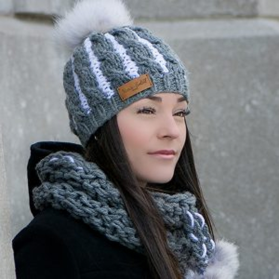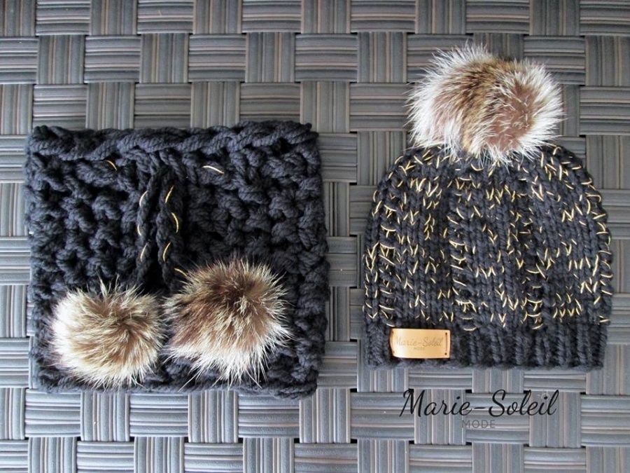 Foulards, tuques et accessoires en laine hypoallergénique et fourrure recyclée de coyote et de chat sauvage, réalisés en exemplaire unique par des techniques de tricot.