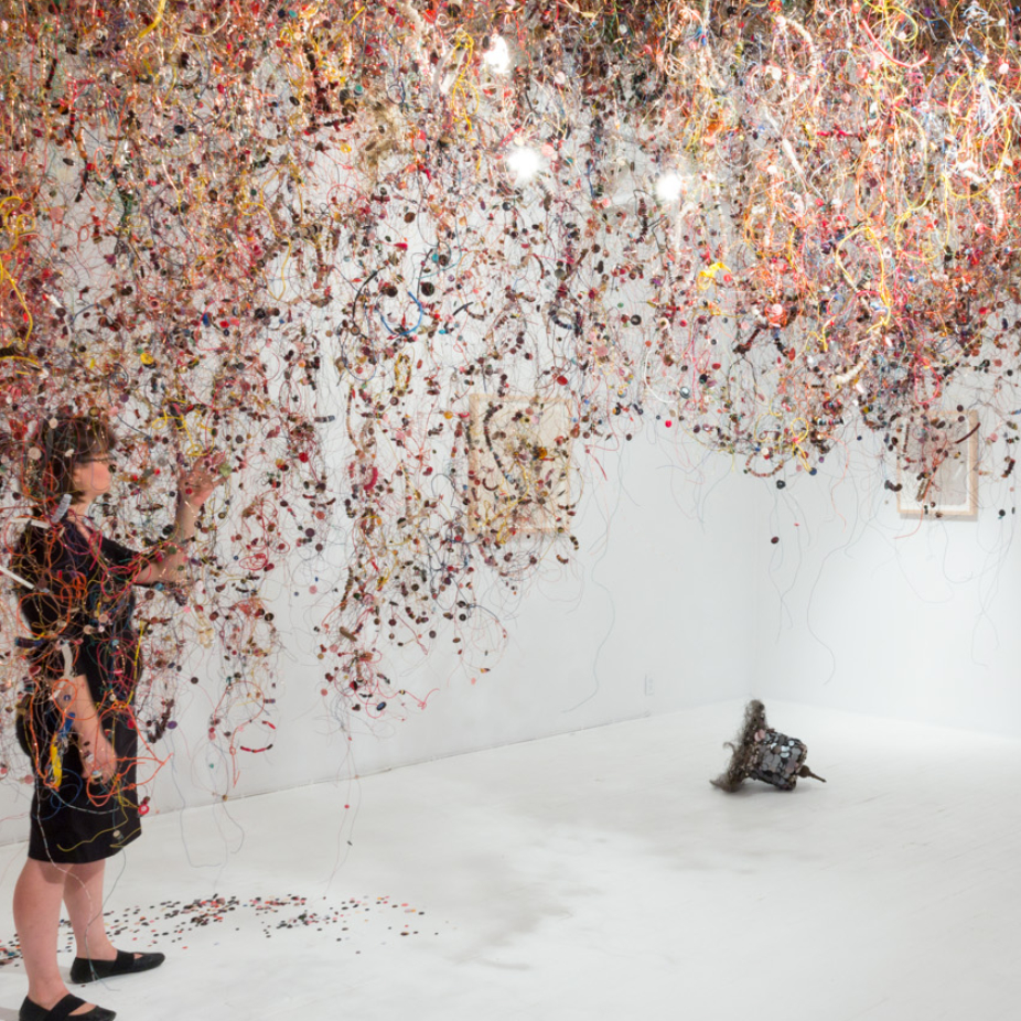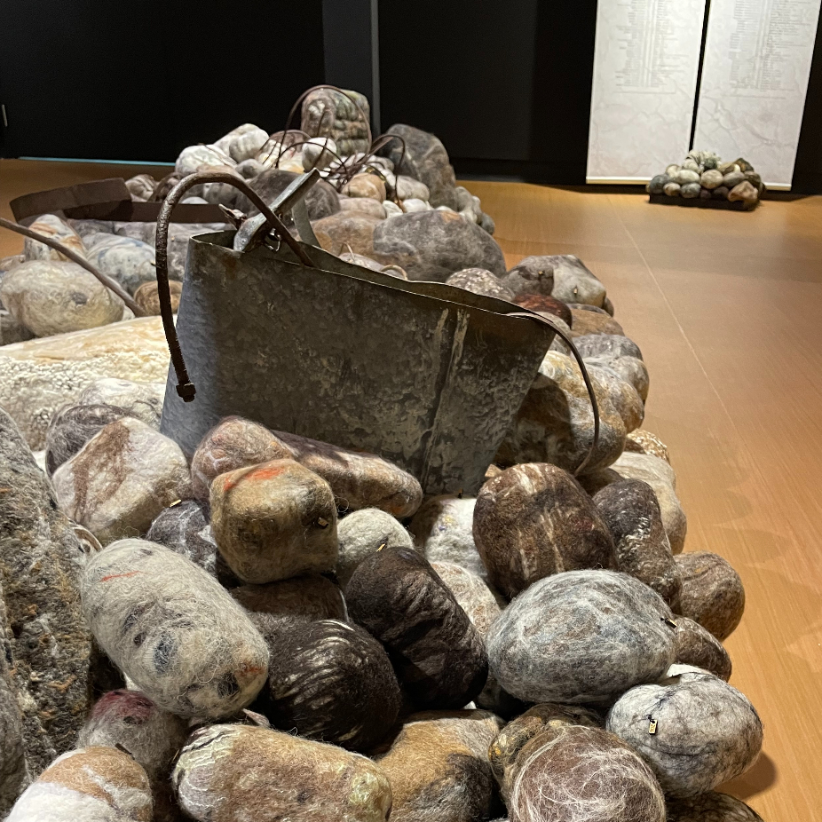Œuvres d’art picturales, sculpturales ou installatives liées aux arts textiles contemporains et à la pratique de surcyclage. Les techniques utilisées sont variées: papier fait main, feutrage, teintures et encres naturelles, broderie, couture, assemblage.