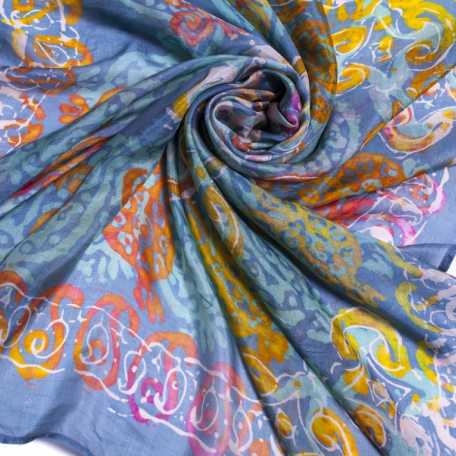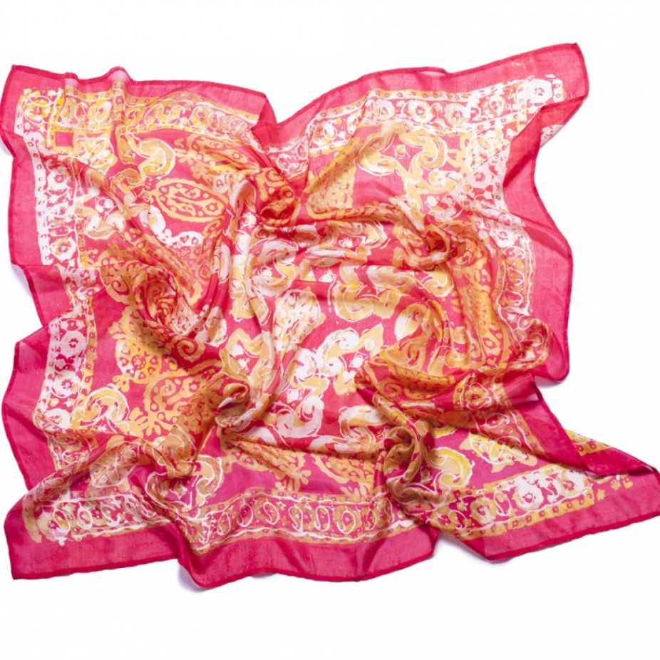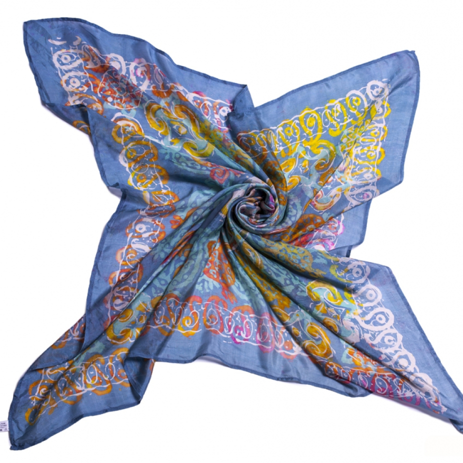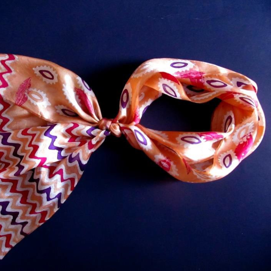 Foulards et accessoires en soie réalisés par la technique de l’impression sur tissu.