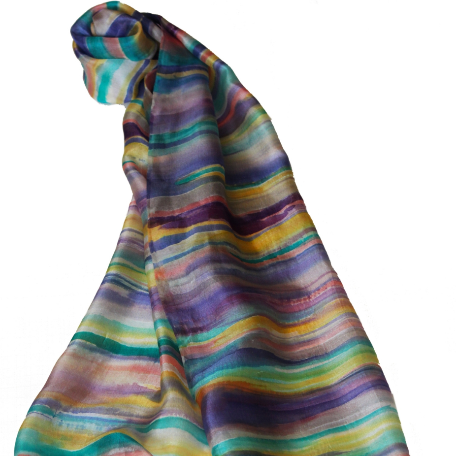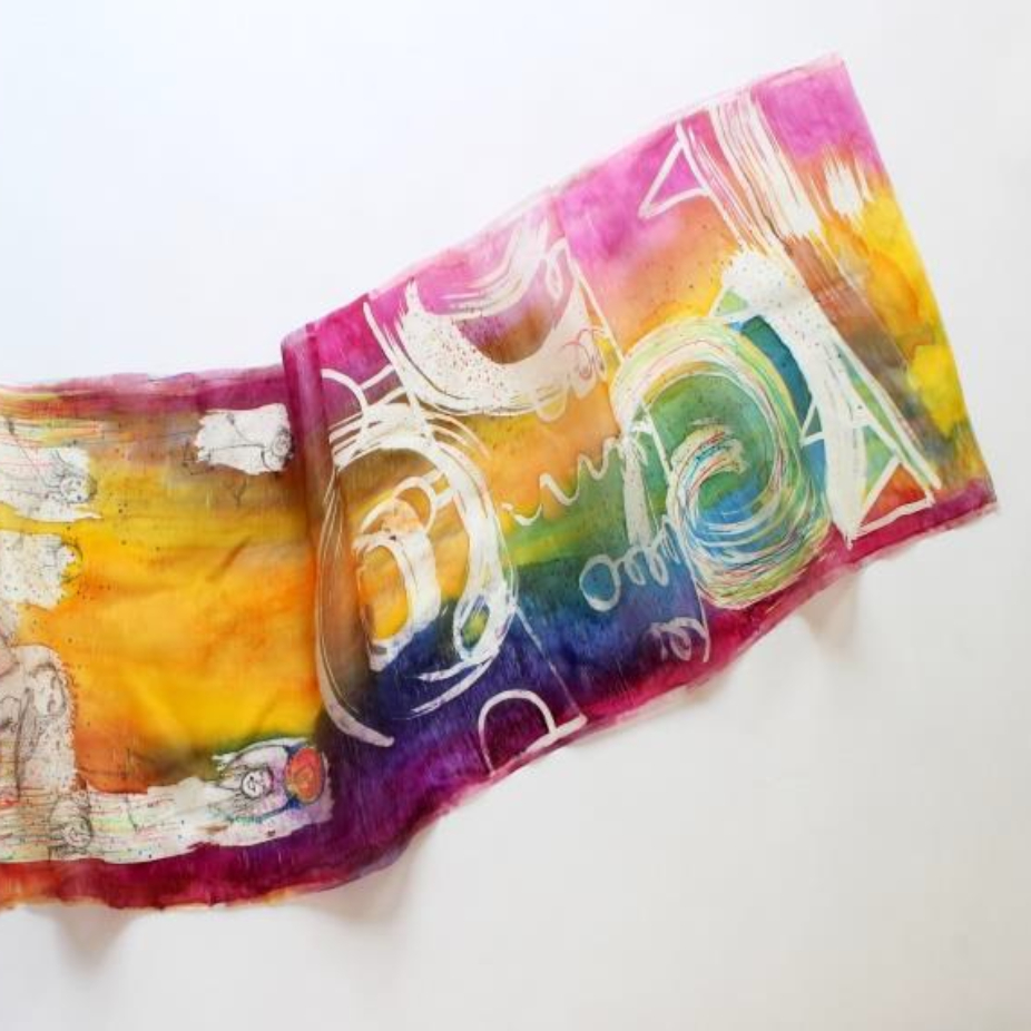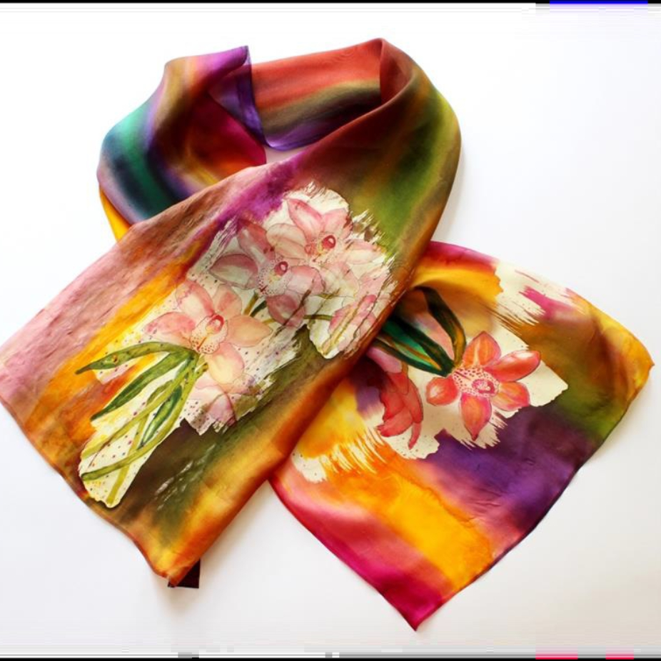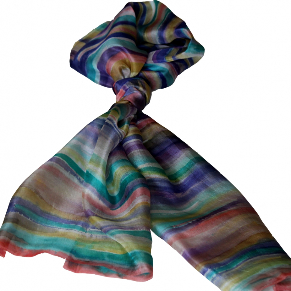 Foulards et accessoires en soie réalisés par la technique de l’impression sur tissu.