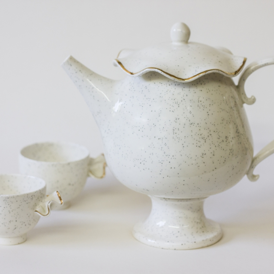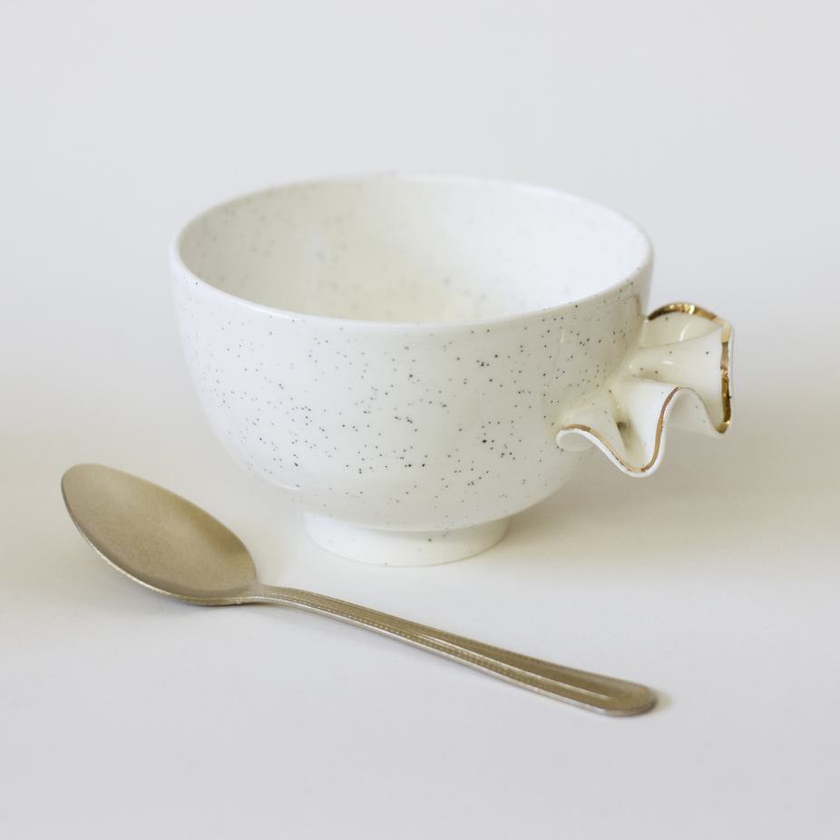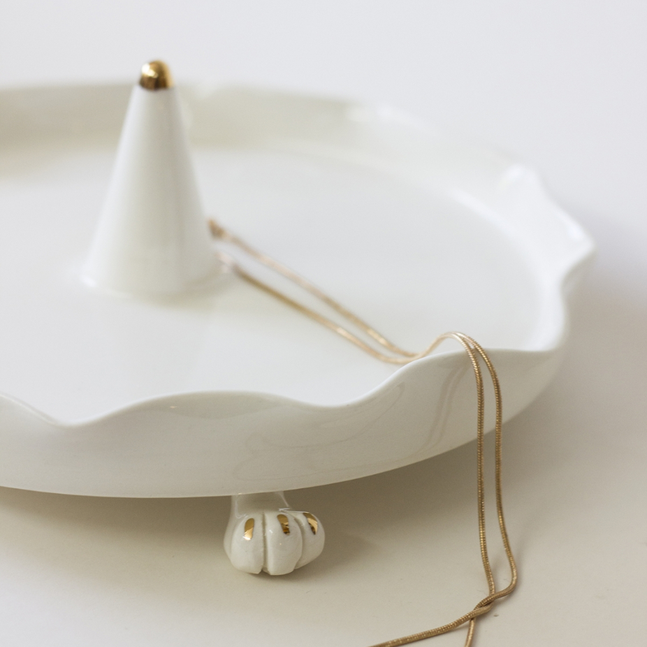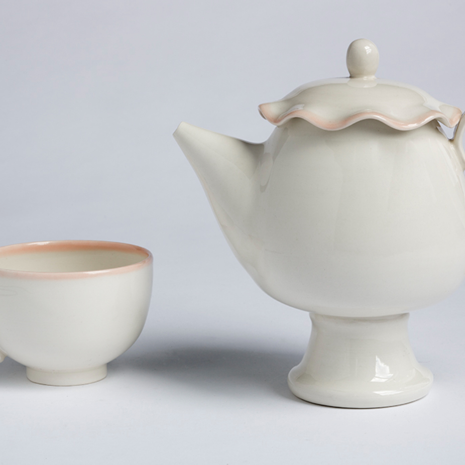 Stéphanie Goyer-Morin a graduée au Centre de Céramique Bonsecours en 2014. Elle a complétée son baccalauréat en Arts visuels et médiatiques à l’UQAM en 2009 et elle est titulaire aussi un DEC en Arts et Lettres profil mixte. Que ce soit un bol, une théière ou un plateau, ses pièces, faites à la main, créent une ambiance unique et accueillante. En s’inspirant entre autres des contes de fées, Stéphanie explore la combinaison entre la sculpture et la fonctionnalité. À travers ses pièces, elle aime raconter des histoires fantastiques et absurdes qui chevauchent la délicatesse et l’étrange. Elle crée des œuvres à la fois sculpturales et utilitaires dans son atelier du quartier Mile End à Montréal. Inspirée des contes de fées, elle infuse ainsi dans le quotidien une dose de magie et d’absurde à travers des objets capables de générer histoires et émerveillement.