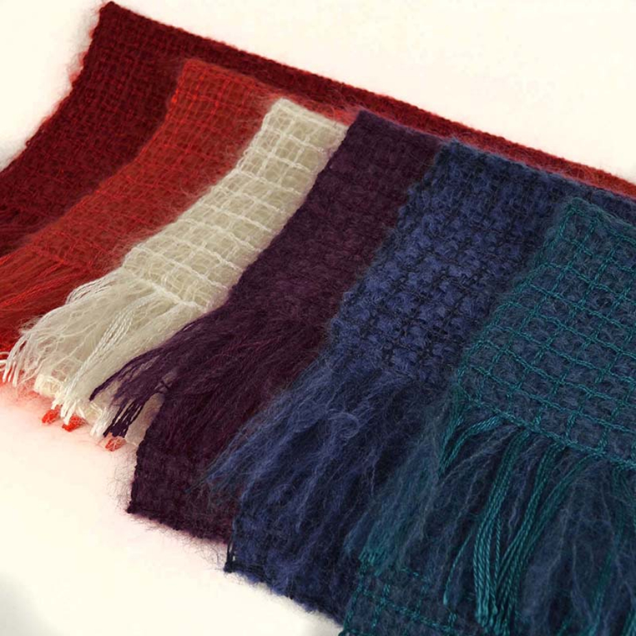 Coussins et accessoires tissés: châles, foulards, cache-cous.