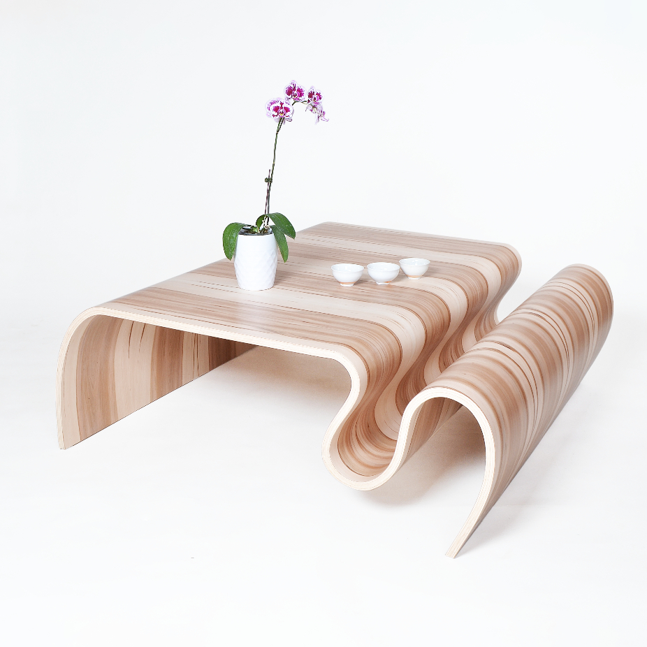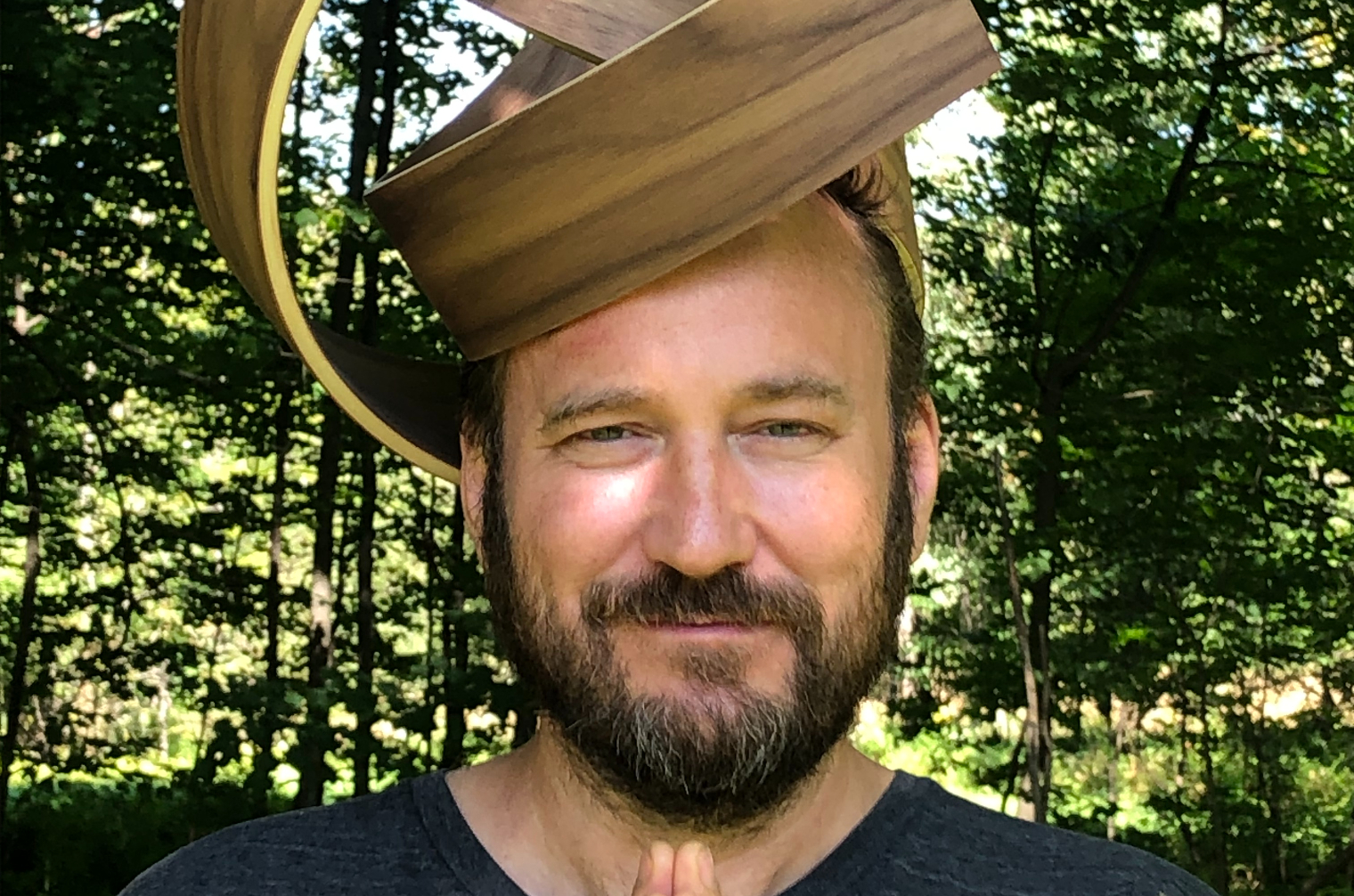 Kino Guérin, ébéniste originaire du Saguenay, reçoit sa formation en ébénisterie à l’Institut des métiers d’art au Cégep du Vieux-Montréal. Son talent est rapidement reconnu. Depuis 1998, il a reçu de nombreux prix au Québec et depuis une dizaine d’années, il reçoit régulièrement des bourses de recherche du Conseil des arts du Québec et du Canada. Kino Guérin aime les défis : faire des objets avec un seul morceau de bois. Bien sûr il n’y a pas qu’un seul morceau, il y en a plein, très minces, collés les uns par-dessus les autres pour pouvoir les courber, leur donner du mouvement.
