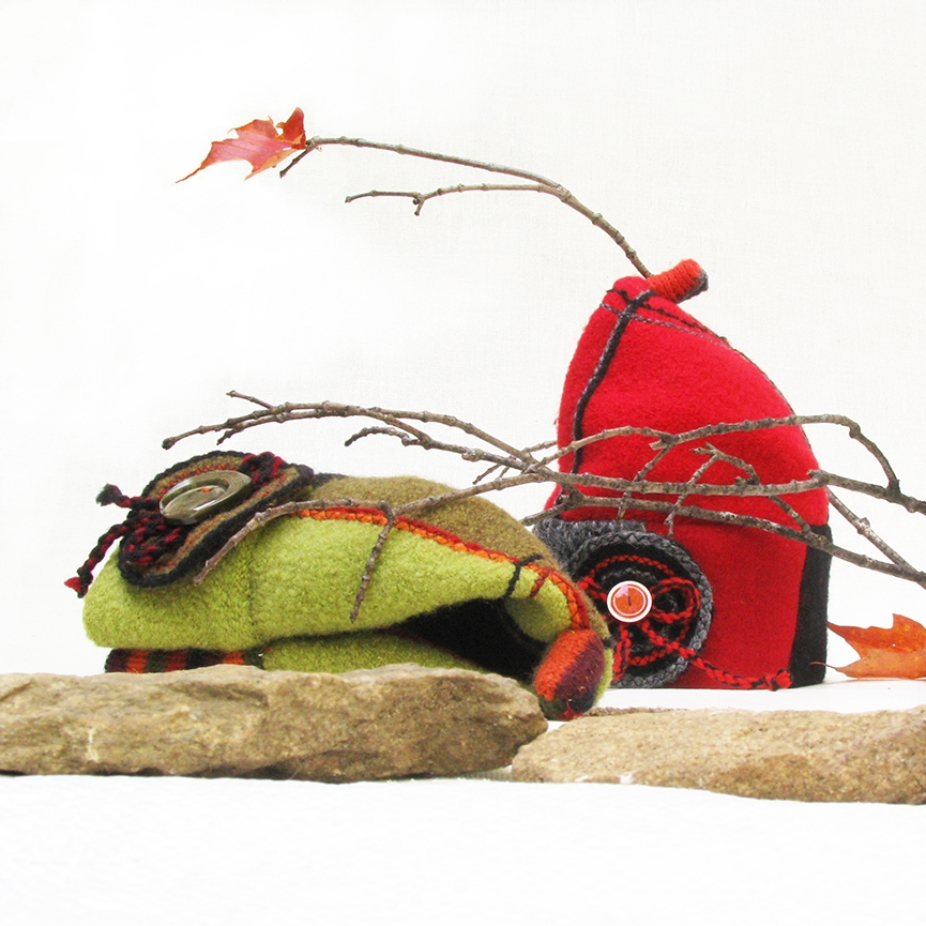 Une façon de faire, propre aux Chapeaux de Clémence: des agencements de tissus recyclés; une grande sensibilité pour les couleurs; des accessoires vestimentaires authentiques.