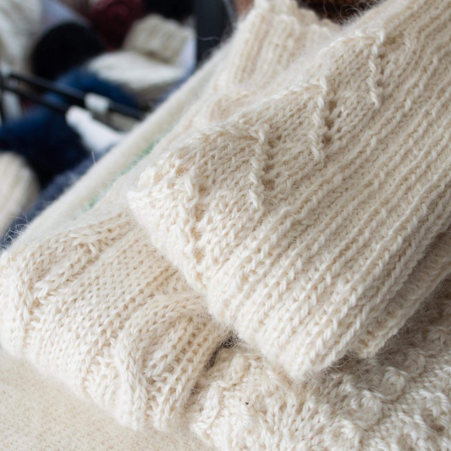 Vêtements et accessoires en mohair, réalisés par des techniques de tricot et tissage: chandails, foulards, tuques, mitaines, chaussettes, couvertures.