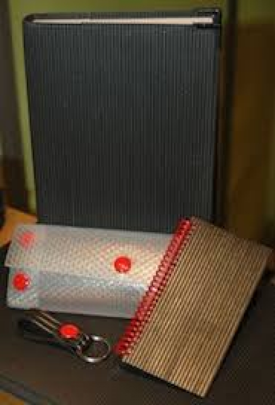 Étuis, porte-documents et autres articles en caoutchouc recyclé.