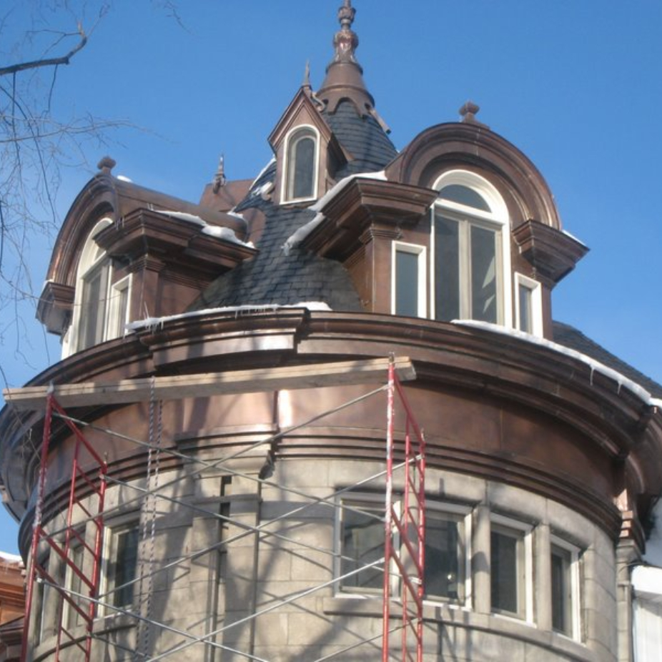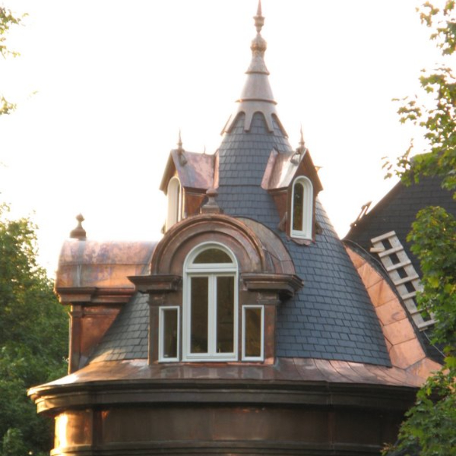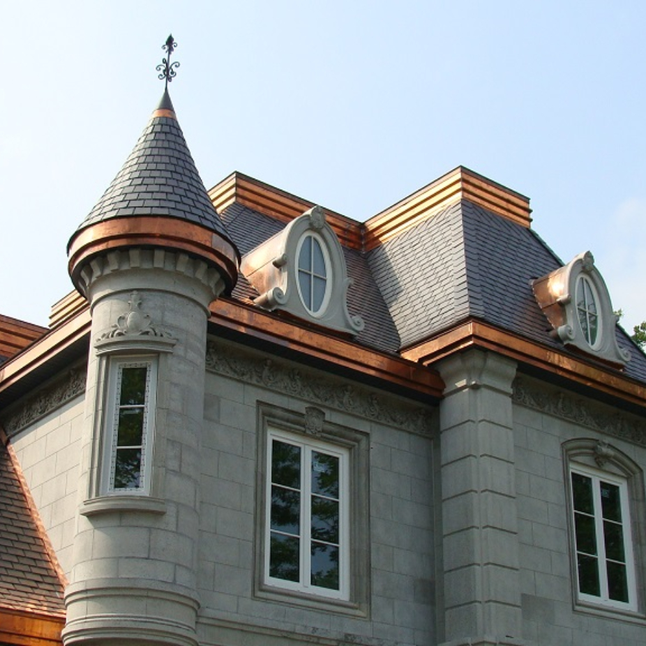 Corniches ornementales en métal . Cheminées et objets architecturaux en cuivre, réalisés en exemplaire unique par des techniques de ferblanterie
