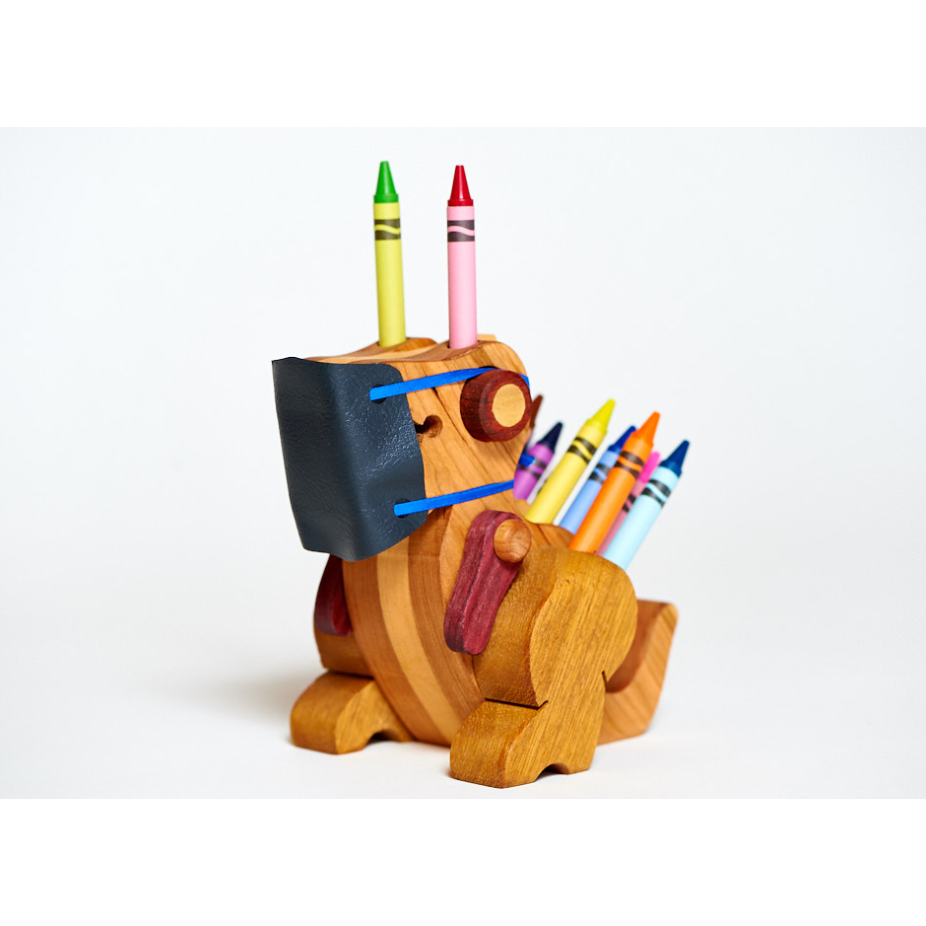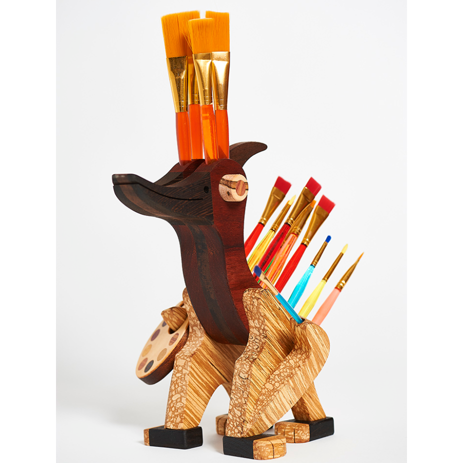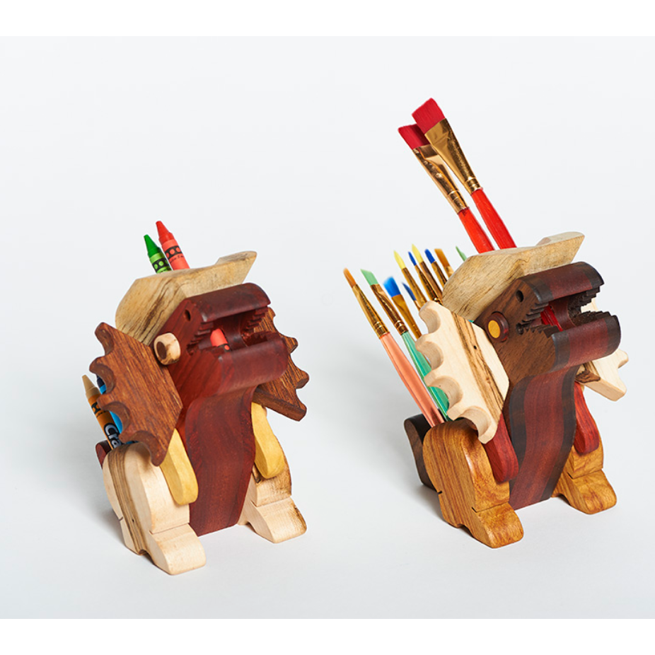 Alain Mailhot, sculpteur-jouettier, utilise une centaine d’essences de bois provenant des cinq continents pour réaliser ses œuvres aux formes animales : porte-crayons, porte-pinceaux, coffrets, etc. Pour profiter pleinement des couleurs naturelles des essences de bois et de leurs textures tactiles et visuelles, l’artiste n’utilise que de l’huile et de la cire comme enduits protecteurs. Depuis 1978, Alain Mailhot a participé à plusieurs expositions au Québec, au Canada et en Europe. Plusieurs revues et journaux du Québec et des États-Unis ont fait l’éloge de son travail.