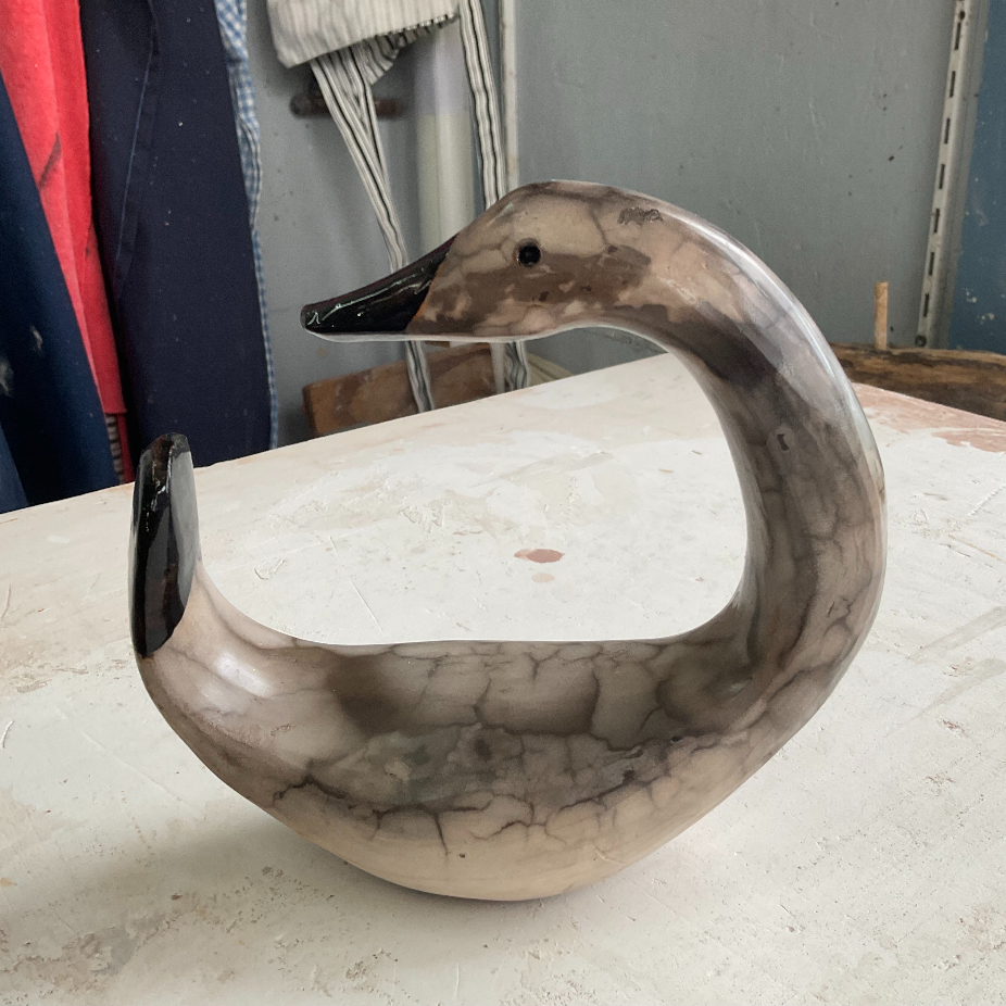 Né en 1950, à St- Apollinaire, Daniel Martineau se découvre, dès l’âge de 13 ans, une passion pour la céramique qui le conduira à l’enseignement d’abord puis à une production artisanale et enfin à l’expression artistique. Il débute sa formation technique auprès de Julien Cloutier, un pionnier de la céramique au Québec. Après avoir gagné plusieurs prix dont le prix «Julien», celui-ci a exploré et expérimenté les techniques de cuissons primitives, de l’enfumage et de la carbonisation. Un talent sûr et une maîtrise exceptionnelle de la technique influencée par les grands noms du Québec et de la France, guideront sa démarche exploratoire et créative. Au fil des années, il a rencontré plus de 15,000élèves grâce au programme «La culture à l’école», qui lui a permis de réaliser en milieu scolaire plus d’une dizaine de murales. D’autres projets d’envergure ont vu le jour dont une vaste murale, à la Caisse populaire de Lyster et une autre au Centre des loisirs de St-Norbert d’Arthabaska. La dernière œuvre en lice est celle du parc Bouchard à Victoriaville. Quatre tours tapissées de plus de 500 mains d’enfants et coiffés des différents droits des enfants, identifiés par l’Organisation des nations unies (ONU). Parallèlement à tous ces projets, il a offert de nombreuses formations qui l’ont amené à devenir mentor pour plusieurs céramistes et ce, jusqu’à aujourd’hui. Autodidacte, il continue ses recherches qui sont actuellement concentrées sur un four d’argile nommé «L’igloo» . Quel beau projet et tout ça pour rendre des gens heureux!