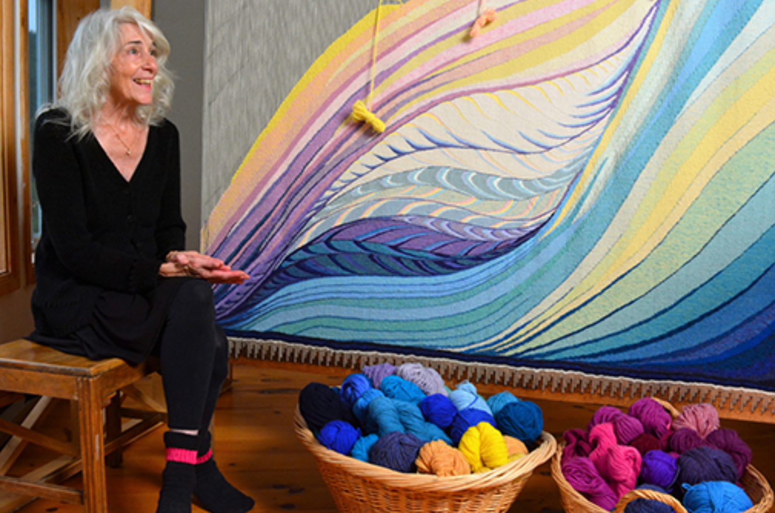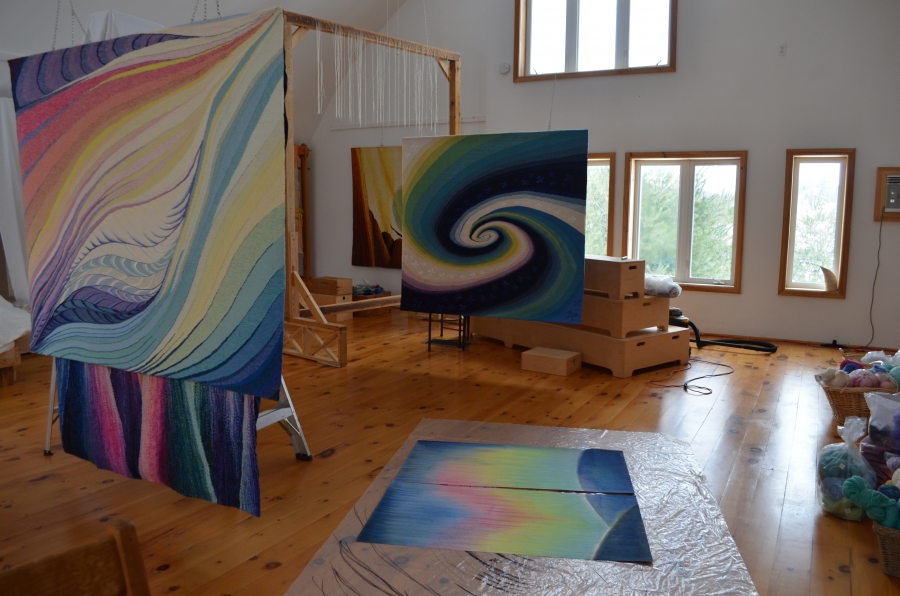 Mon travail est une réponse visuelle au paysage naturel et à la beauté de la terre. À travers la tapisserie et le dessin, j’explore les énergies qui se déplacent à travers tout sur et au-delà de notre planète. J’essaie de communiquer l’harmonie et le mouvement. La lumière est un élément important et une source d’inspiration. Je suis profondément émue par le mystère du tissage. Pour moi, le tissage est une métaphore contemporaine des interactions et des interconnexions entre tous les systèmes vivants de notre biosphère.