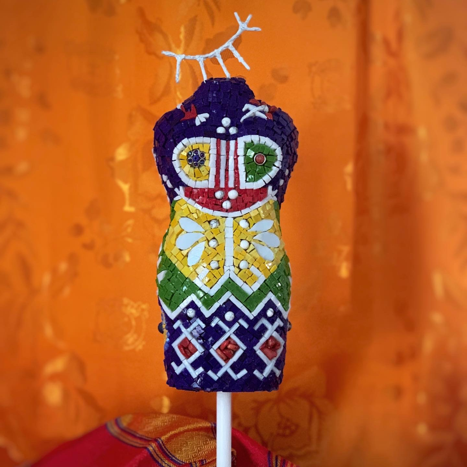 Artiste autodidacte, Adeline commence sa pratique dans sa ville natale angevine en 2005 lorsqu’elle décide de laisser sa carrière juridique pour devenir mosaïste professionnelle. Elle apprend en travaillant sur le terrain avec des maîtres mosaïstes canadiens, italiens et français. Elle est aujourd’hui basée à Montréal au Québec depuis 2007.Franco-québécoise d’origine kabyle et polonaise, son travail se dirige actuellement vers une compréhension géoculturelle des communauté diasporiques au Québec ayant des origines nord-africaines de deux générations et plus, à travers notamment les symboles berbères et une inspiration des arts premiers. Adeline propose par ailleurs des ateliers de mosaïque aux élèves dans les écoles, en réalisant des murales avec la participation des citoyens dans les ruelles vertes, en ouvrant une école d’art mosaïque pour les enfants en Haïti. La capacité du médium en art-thérapie la conduit également à travailler avec les jeunes atteints de déficience intellectuelle et du trouble du spectre de l’autisme. Il s’agit là de stimuler le potentiel créatif de chacun, d’inciter à l’ouverture vers soi, le soi intérieur, autant qu’à l’ouverture vers l’autre, et de proposer un autre moyen d’expression.