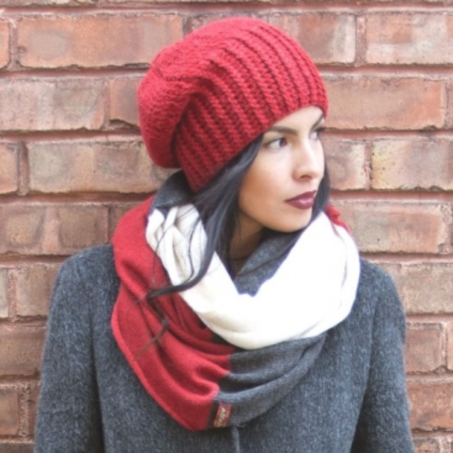 Accessoires en laine d’Alpaga super fine de Bolivie, réalisés en petite série par des techniques de tricot : cols, foulards, mitaines, mitaines avec torsadés, tuques.