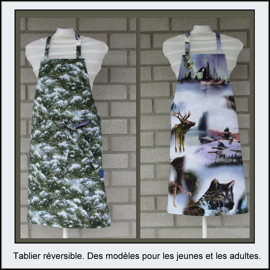 Lorrain Andrée est grandement préoccupée par la pérennité des vêtements. Ainsi, elle se spécialise dans la confection de bavoirs, couvre-tout, tabliers et draps d’allaitement, un domaine où elle peut exprimer sa créativité. Dans ce créneau, elle est honorée d’être reconnue par le Conseil des métiers d’art du Québec (CMAQ) puisque cette reconnaissance confirme la justesse des valeurs qu’elle privilégie; unicité et qualité. Elle se fait une fierté de répondre aux besoins, et même de les percevoir, exprimés par les enfants et les adultes qui se font une joie de porter ses confections dans leur quotidien que ce soit à la maison, à l’école ou à l’atelier. Ses créations sont en vente dans quelques boutiques de sites touristiques. Pour répondre à leurs exigences, elle sélectionne soigneusement les imprimés faisant écho aux attraits du lieu visité par les touristes. Pour des besoins pointus, ses confections peuvent être produites en petite série représentant un même thème. Sa clientèle offre souvent ses confections en cadeaux, se retrouvant ainsi dans plusieurs pays. Plus particulièrement, des démarches entreprises au printemps 2016 l’ont amené dans le sud de la France où elle a pu déballer ses confections dans certains marchés de Provence, et connaître un succès appréciable.