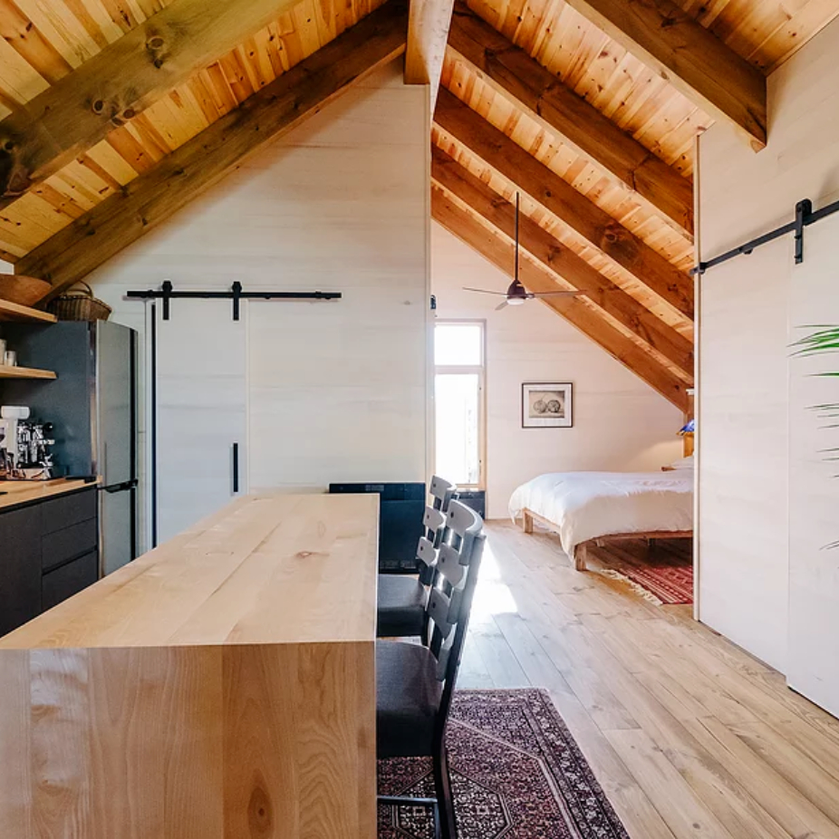 Chez LINÉAIRE - ÉCOCONSTRUCTION notre vision du bâtiment d’aujourd’hui se veut un métissage de méthodes ancestrales et de techniques contemporaines de charpenterie. Notre objectif premier est de créer des espaces sains et respectueux de l’environnement tout en offrant une remarquable qualité de conception et de fabrication.