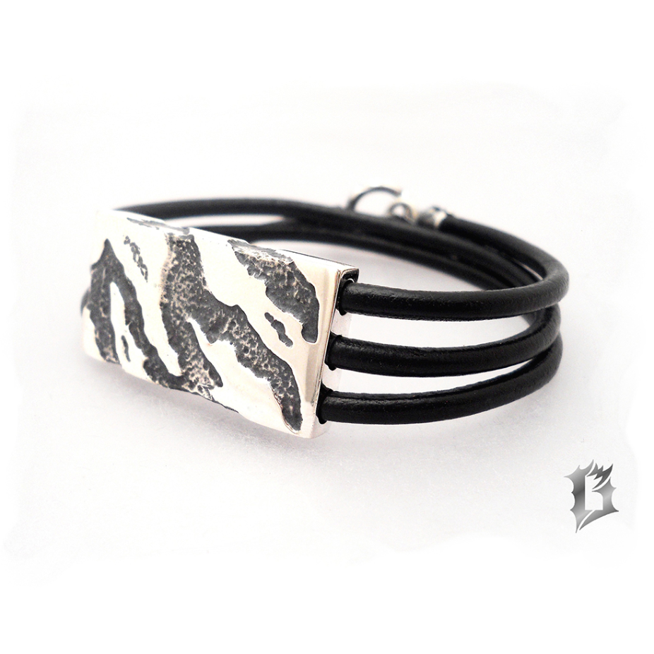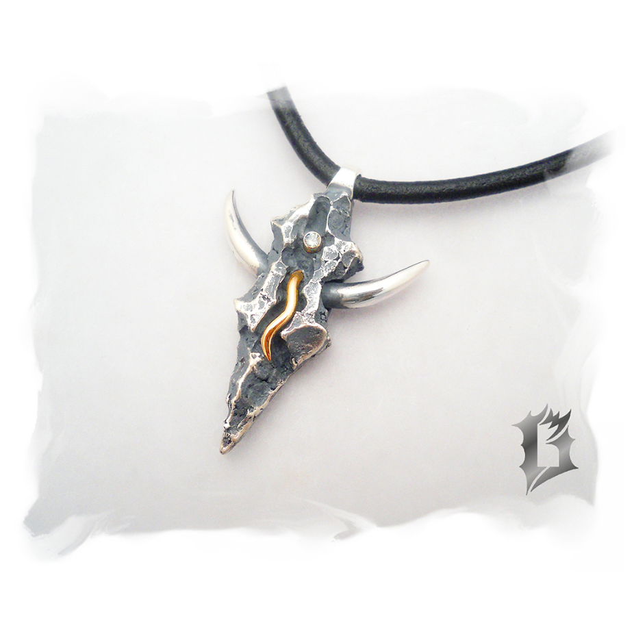 Il utilise principalement l’argent sterling oxydé ou l’or. La présence de ces deux métaux dans un même bijou donne aussi un contraste très intéressant.