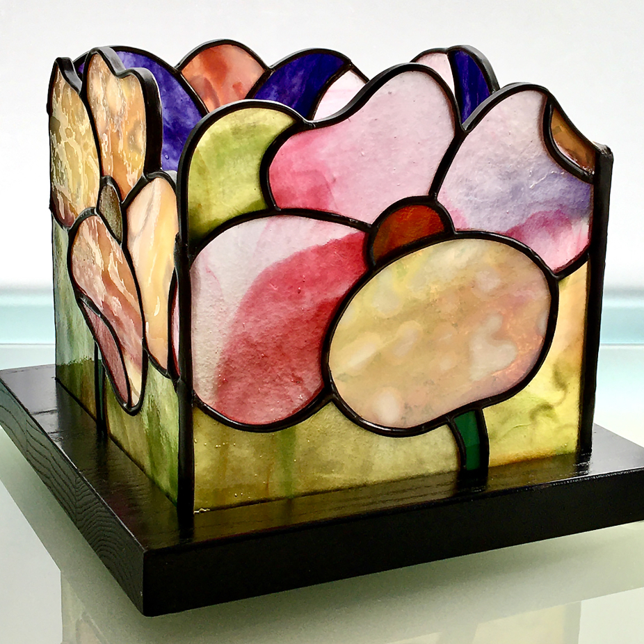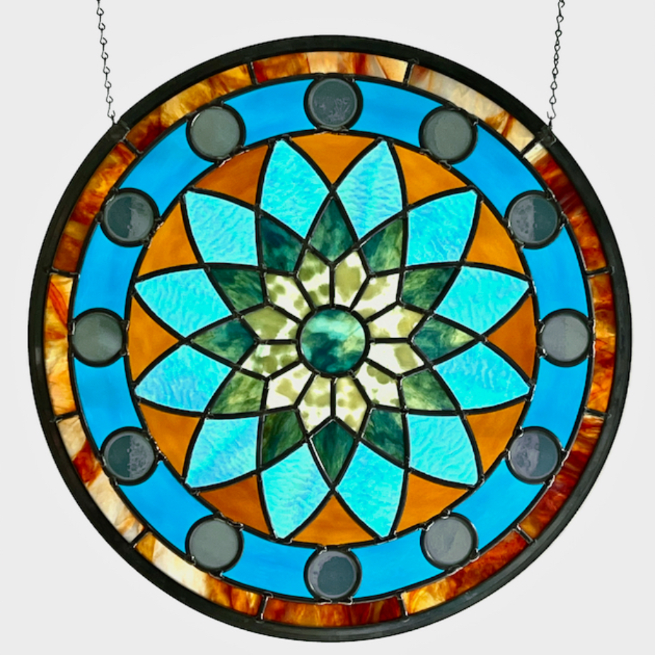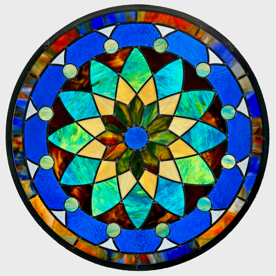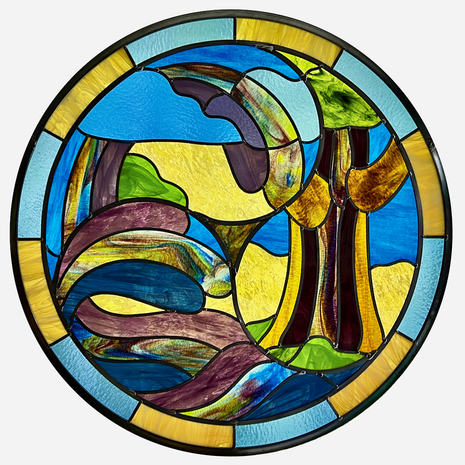 Technicienne en cartographie de formation, Sylvie Savoie se laisse séduire par une forme d’expression où le dessin rencontre la lumière : le vitrail. Sa démarche s’ancre dans la nature et l’humain, à la recherche constante d’une esthétique vivante et symbolique. Avant-gardiste dans le traitement de ses sujets, elle crée des pièces uniques, où le verre devient narration, et le plomb, une ponctuation graphique. En avril 2025, son expertise est consacrée par le Prix Maestria Alain-Lachance, décerné par le Conseil des métiers d’art du Québec, soulignant son excellence en restauration patrimoniale. Ce prix confirme l’impact de son travail sur la sauvegarde du patrimoine bâti québécois, notamment avec la restauration des vitraux de l’église Saint-George de Drummondville. Ses œuvres prennent forme dans une grande diversité de projets : — une verrière monumentale de 21 pieds pour une galerie d’art corporative — des impostes vitrail-tableaux en Ontario — une horloge sur fond de verre à la bibliothèque de Drummondville — un réverbère de jardin sur la terrasse de la Maison des arts Desjardins Architecturales, symboliques ou honorifiques, ses œuvres en verre fusion, grisaille, Tiffany ou à la baguette, révèlent une maîtrise rare, toujours au service de la lumière.