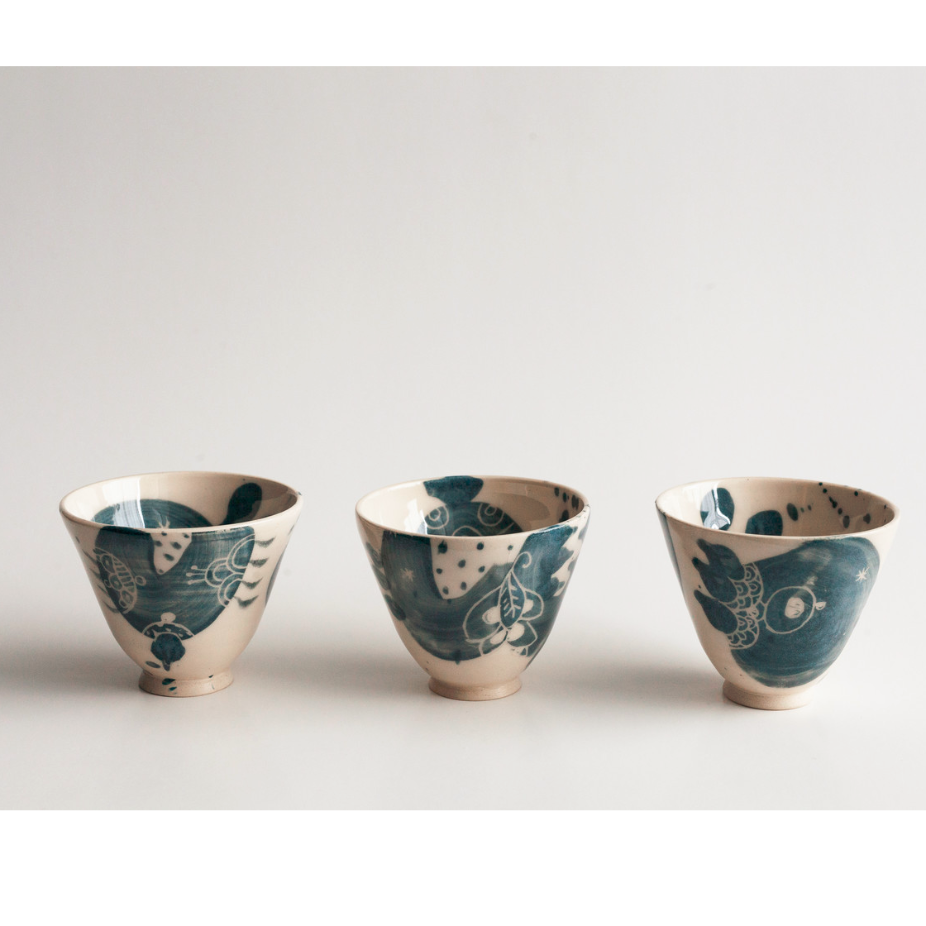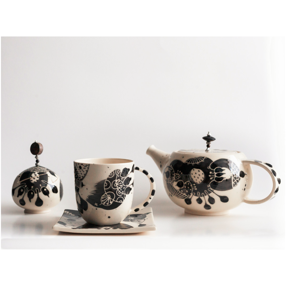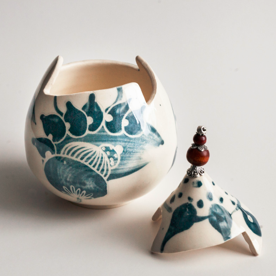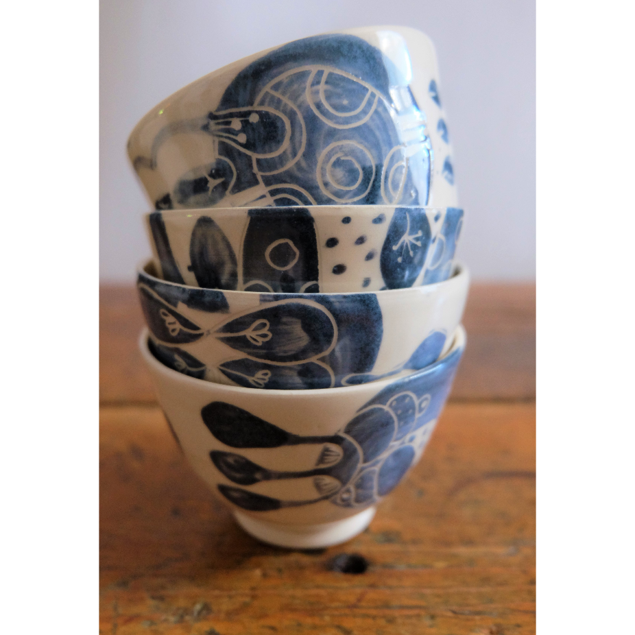 Elle vient ensuite graver des histoires dans chaque pièce leur donnant ainsi un caractère unique. Depuis 2003, cette céramiste cultive l’imaginaire dans son graphisme, et crée ainsi un utilitaire tout en légèreté, en finesse et en sourires.